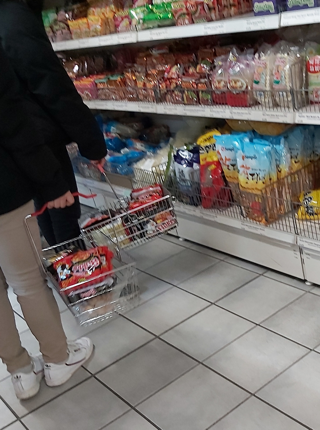 그리고 다들 장바구니에 한국 음식들이 가득했다.