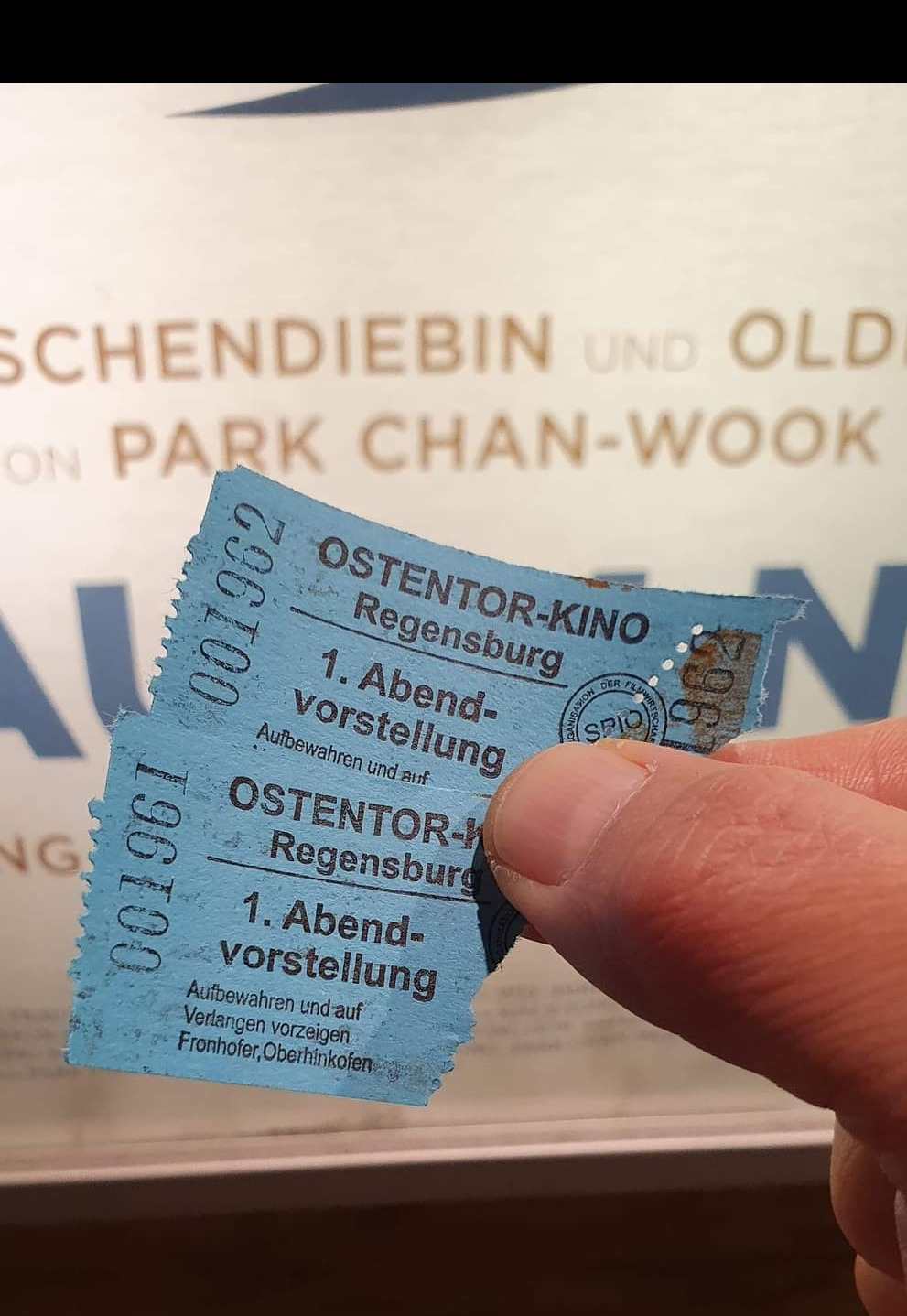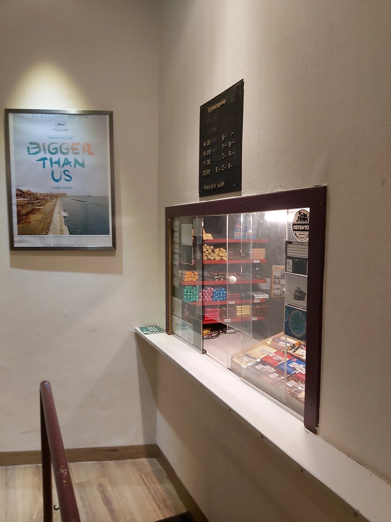 우리 동네의 영화관을 검색했더니 작은 영화관에서 상영 중. 전화해서 물어보니, 다음주 수요일 저녁 8시 타임이 오리지날에 독일어자막이란다. 저녁 8시라...초저녁잠이 많은 나는 넘기 어려운 시간이지만, 그래도 한국말로 나오는 영화는 처음이라, 남편에게 지나가는 말로 했더니 그날 프로베(합창연습)가 있는데 8시에 끝난다고 끝나자마자 오겠다고, 가자고 했다. 어차피 독일은 영화 시작 전 광고가 워낙 길어서 괜찮을거라고 생각했는데, 연습이 일찍 끝나서 나보다 먼저 도착한 남편은 기념사진을 찍고 있었다^^;
