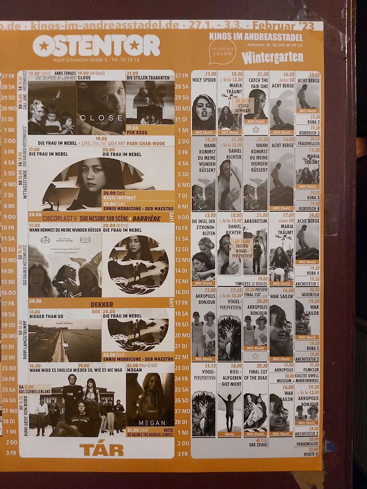 불이 켜지고야 다들 일어서기 시작하고...그제서야 우리도 이제 나가도 되겠지 하며 일어서는데, 둘러보니 관객들이 그래도 한 40명 남짓은 되어 보였다. 신기했다. 한국 영화를 오리지널로 상영하는데 보러 오는 독일 사람들. 그 중에는 나이드신 어른들도 몇분 계셨다. 자막으로 보시기에 어려우셨을텐데(독일 사람들은 워낙에 독일어로만 영화를 보던 버릇이 들어서 독일 친구는 자막으로 보면 신경쓰여서 영화에 집중이 안 된다던데 말이다) 사뭇 고마운 마음도 들었다.