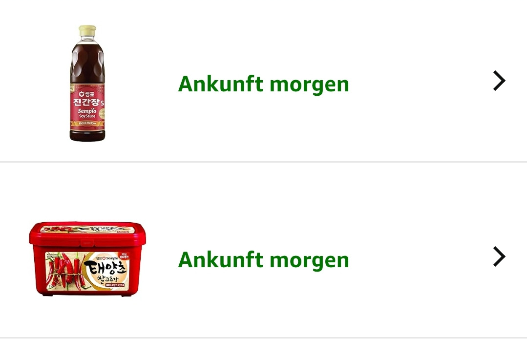 독일살이 25년 만에 한국 식재료를 아마존에서 사게 되는 날이 오다니... 세상이 참 좋아졌네. 하며 할머니 같은 소리를 한다.