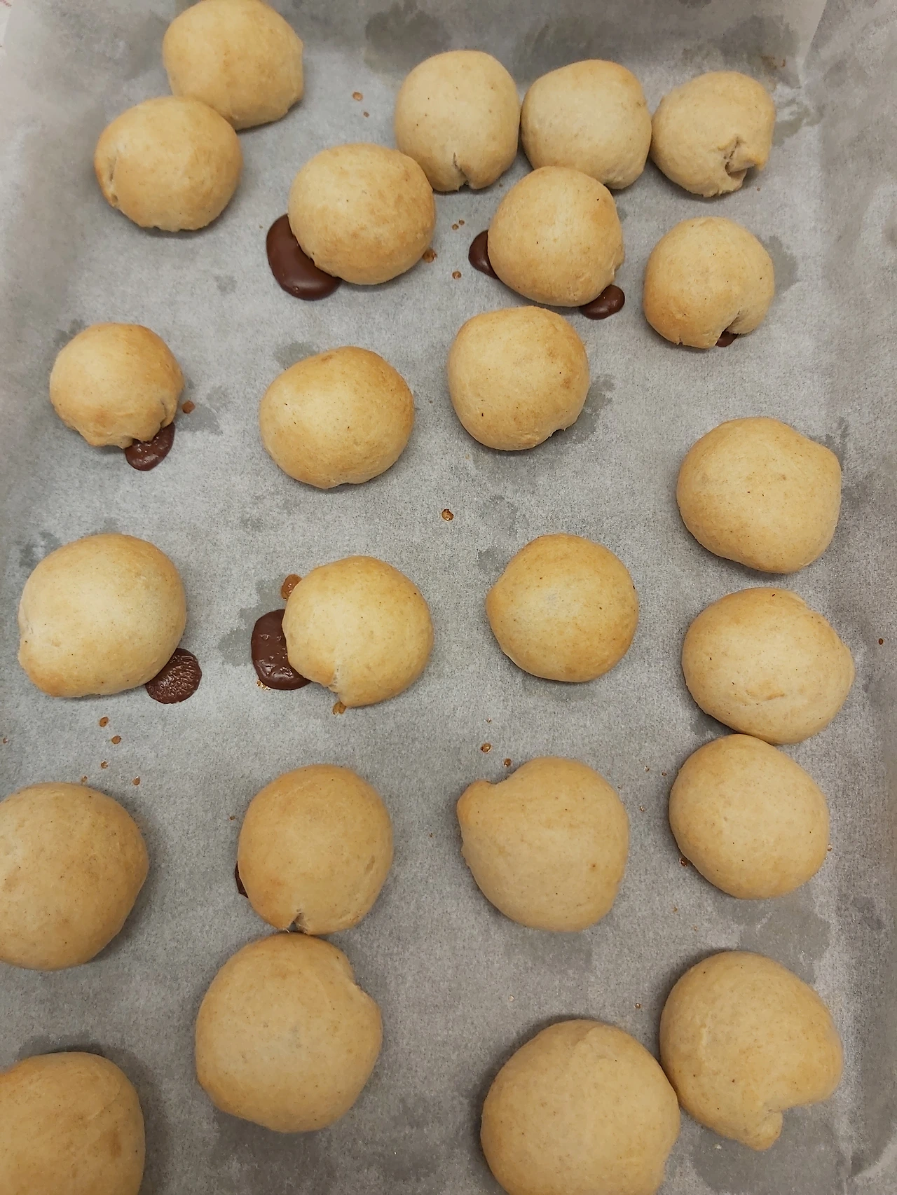 슈크림을 따로 만들 시간이 모자라서, 만들어져 있는 초코 푸딩으로 속을 채웠다. 푸딩이 좀 묽어서 밖으로 새어 나왔다. 아쉽지만, 그래도 일단 반죽이 한국 빵 반죽~