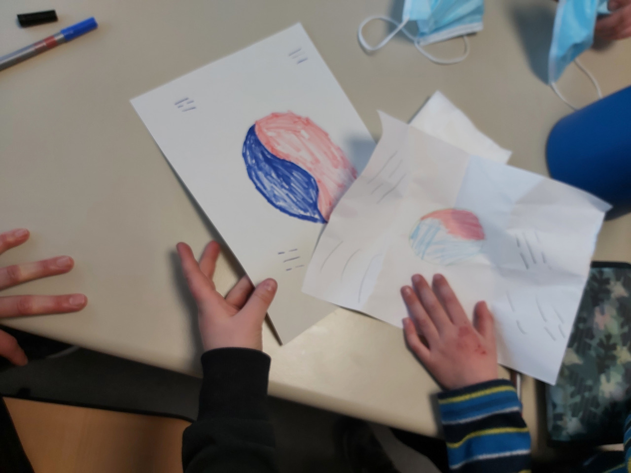 그러자, 또 마침 막내아들이 "오늘 ㅇㅇ이가 나한테 한국 국기 그려서 줬어." 하며 가방에서 종이 한 장을 꺼내 들었다.