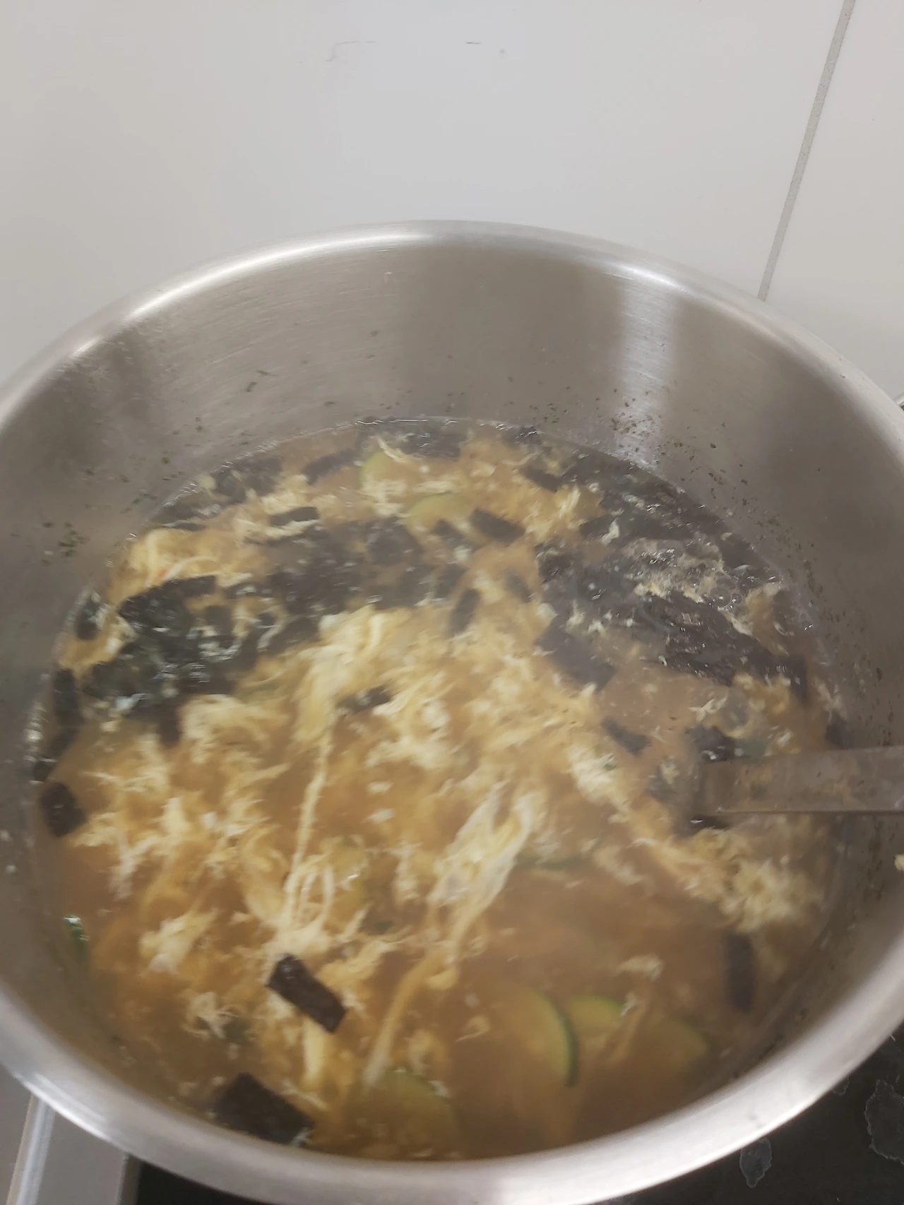 하지만, 국물내기가... 다시마와 멸치는 당연히 없으니 간장과 마늘가루와 치킨스톡으로 우짜든 동 맛을 내야 하는데, 우리 주방의 간장은 너무 달았고 오늘은 파도 없었다. 양파와 호박과 계란과 김으로 얼버무려봤지만, 오늘 국물은 실패인 듯...