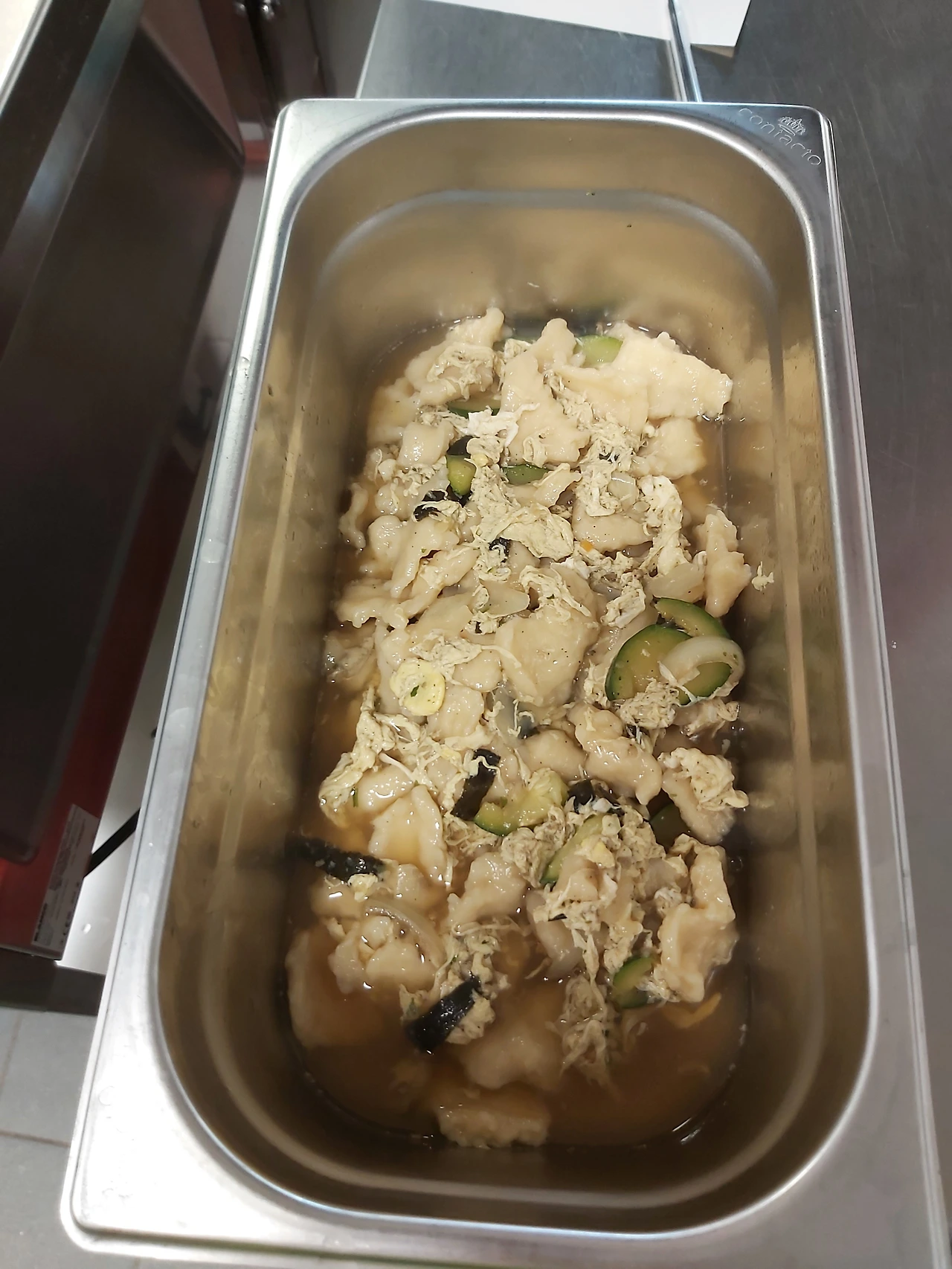 국물을 데워놓고, 수제비 건더기는 따로 뒀다가 퍼지지 않게 배식할 때 넣어줬다.