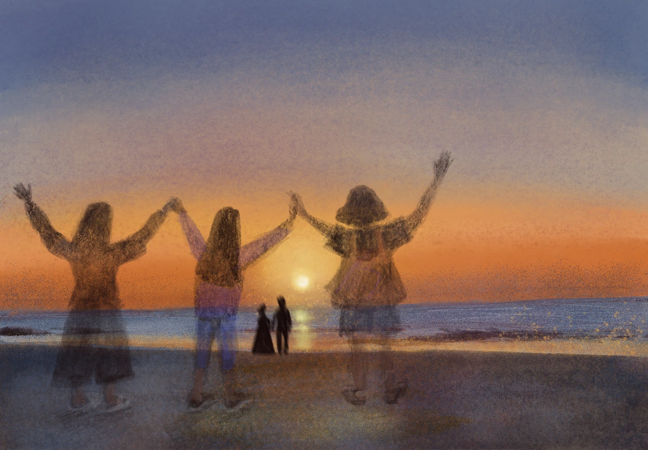 노을빛에 물든 신랑, 신부들을 바라보며
