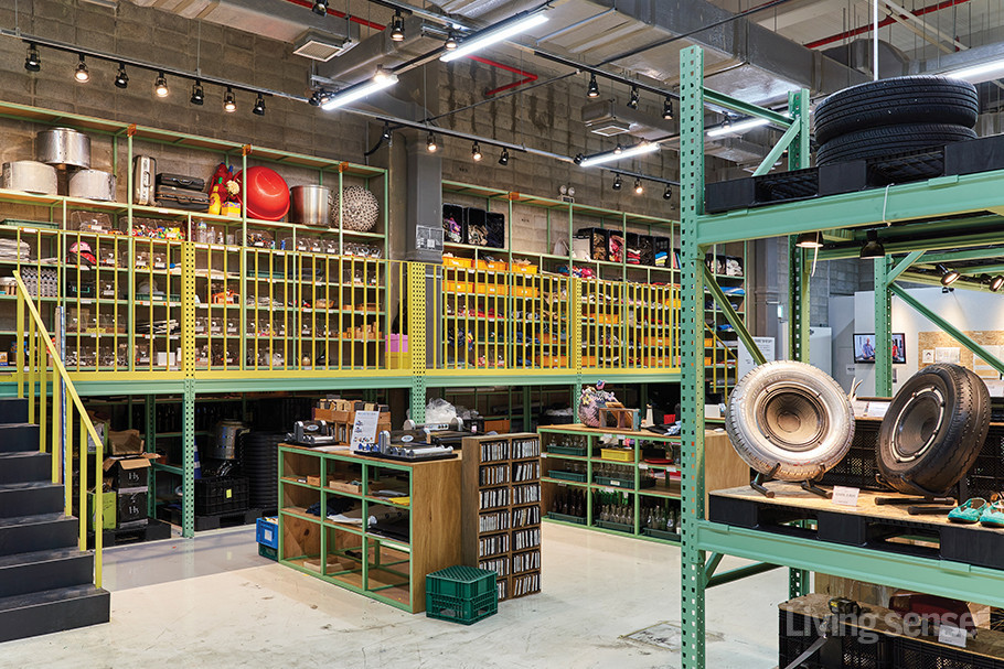 재활용 쓰레기를 예쁘게 정리해 놓은 소재 은행 (출처: 리빙센스)다음으로 내가 가장 가보고 싶었던 재활용 소재를 직접 보고 구매도 할수 있는 소재은행에 들어갔다.