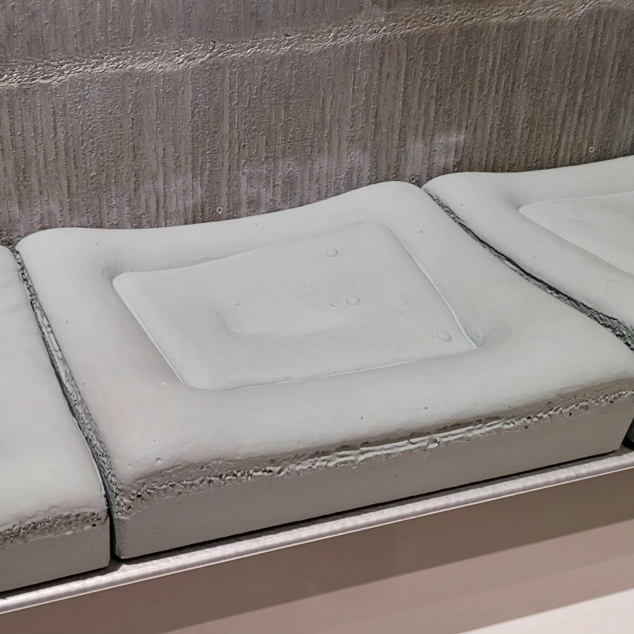 두번째 소파는 한쪽면 틀에서 포밍을 시작해서 뒤집은 후 반대쪽에서 다시 발포 과정을 거치면서 가운데를 붙혀 자연스러운 거친 표면을 살렸다. 디자인이 너무 쿨했고 푹신했다! 개멋져