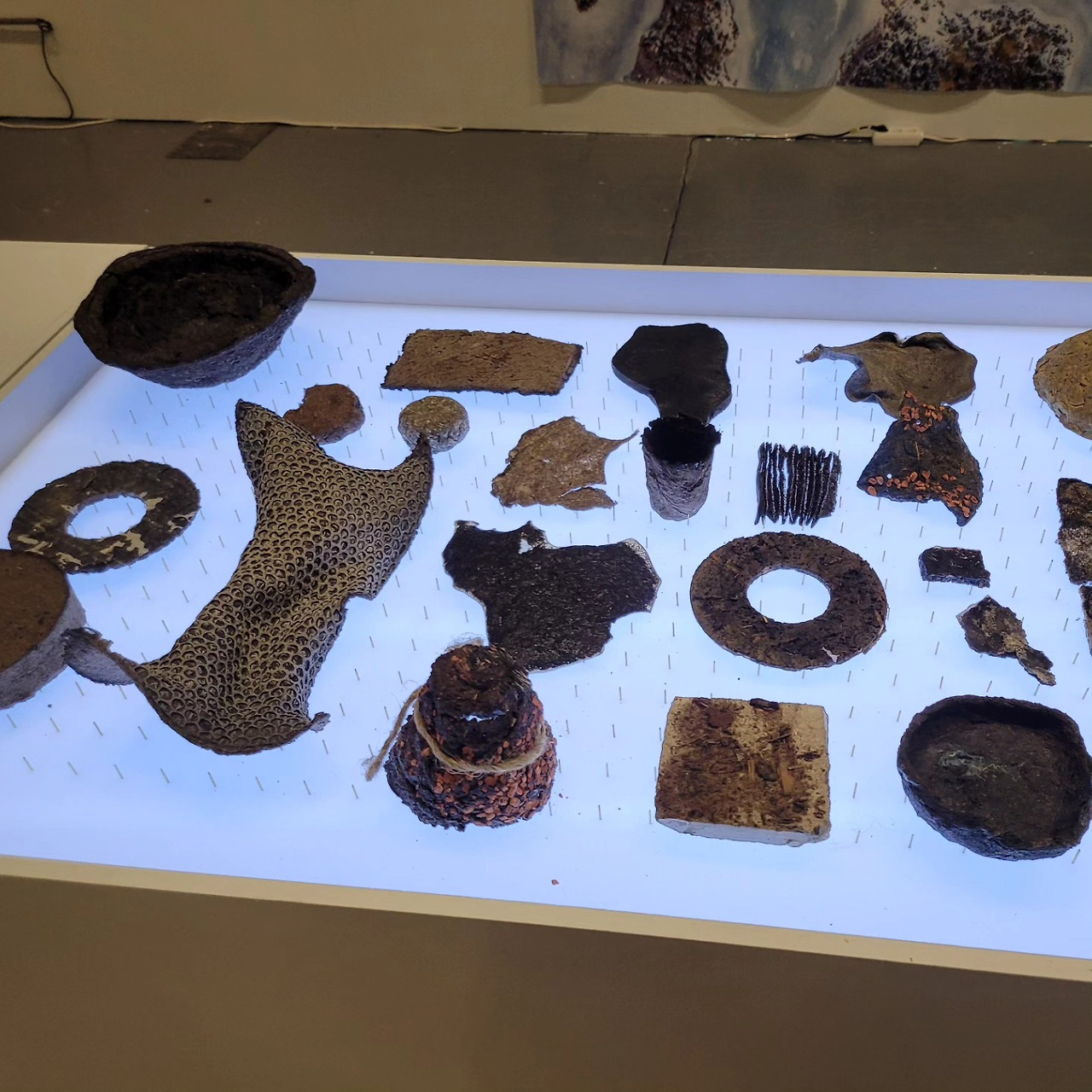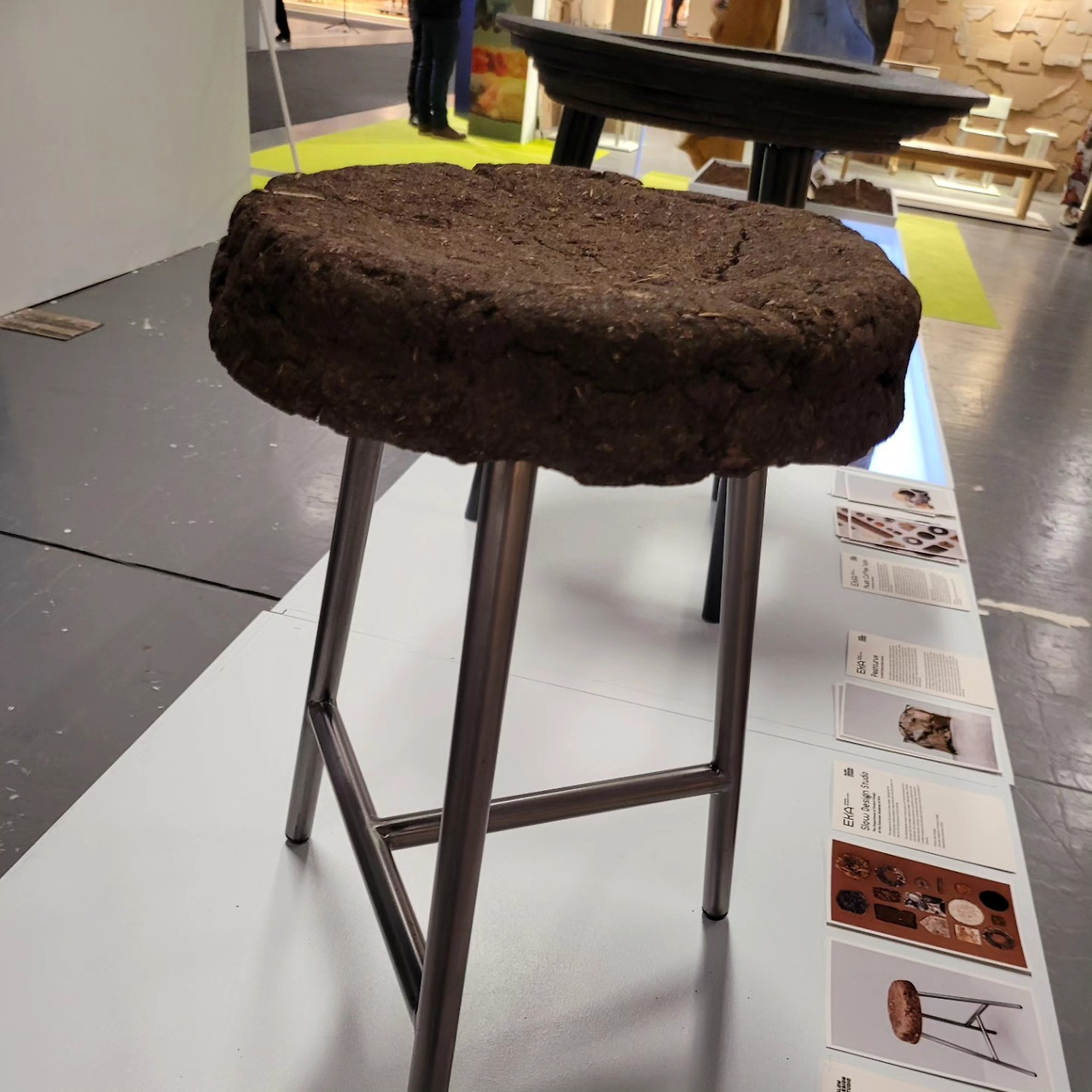 Peat 는 에스토니아에서 많이 생산되며 주요 수출품중 하나라고 한다. 이 업싸이클 프로젝트를 진행한 estonia school of art 제품 디자인 전공 학생들은 liquid glass, kelp (해조류), clay, fiber 등 다양한 소재를 더해 Peat 를 소재화하여 투명하고 빛을 통과하는 특성을 활용해 조명을 만들고 쉽게 성형되며 단단해지는 특성을 활용해 스툴과 커피 테이블을 만들었다. (사진을 못찍었는데 소리를 울릴 수 있는 효과를 낼수 있는 판도 만들어서 스피커를 만들어 볼까도 생각해 봤다고 한다.)