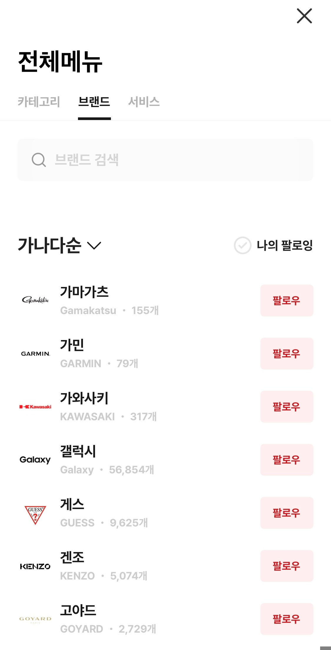 브랜드 중심의 앱으로 진화: 브랜드 별로 상품 확인 가능 + 브랜드 별 상품 추천