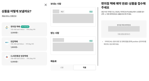 -> '받는 사람 주소 자동으로 불러오기' 기능으로, 택배 신청의 과정 간소화