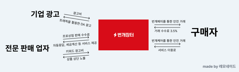개인과 개인 사이에 거래가 일어나는 중고거래 특성상, 수익원을 만들어내는 것이 굉장히 어렵다. 네카라쿠배당토의 당근마켓마저도 매년 적자를 기록하며 수익원 창출에 골머리를 앓고 있는 상황에서, 번개장터는 유일하게 흑자를 '경험'한적이 있는 회사이다. (물론 지금은 다시 적자ㅎㅎ)