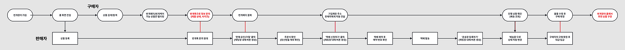 번개장터 가입 -> 홈 화면 진입 -> 원하는 상품or카테고리 검색 -> 번개페이/번개케어 가능 상품만 필터링 -> 번개톡으로 구매 가능 여부, 제품 상태 확인, 사이즈 정보 문의 -> 번개페이 결제 -> 기입해둔 주소 자동으로 판매자에게 전달됨 -> 이후 진행 상황 확인(배송조회 포함) -> 물품 수령 후 구매 확정 -> 번개장터 홈에서 추천 상품 구경 -> 마음에 드는 상점/브랜드 팔로우