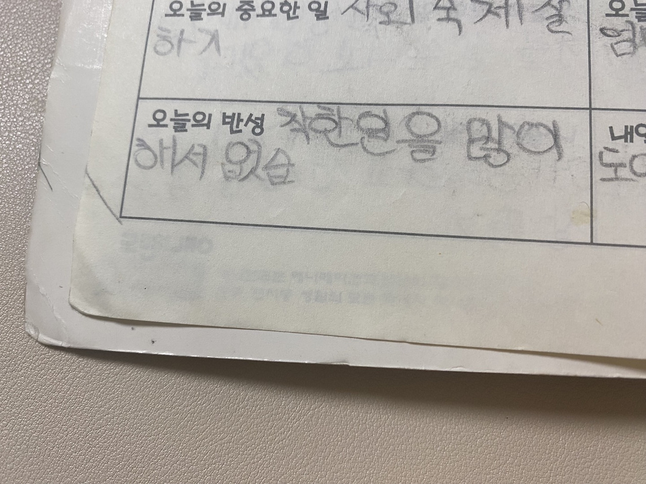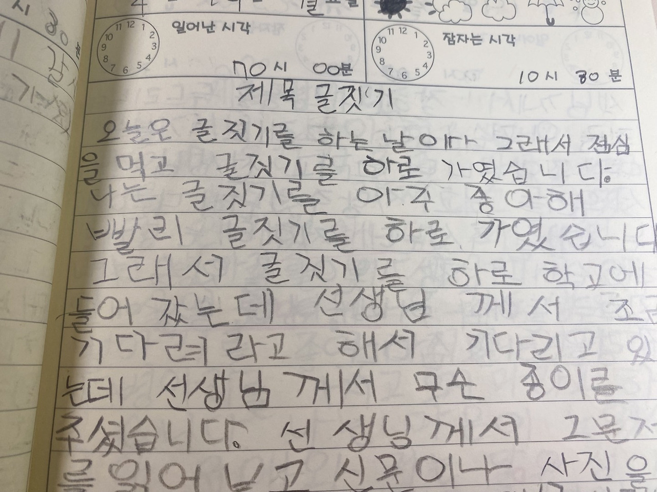 밖에서 친구들과 놀기를 좋아한 어린 나는 일기장의 글씨 크기도 큼직큼직하다. 크기가 크면 선생님과 약속했던 1페이지 분량을 비교적 빨리 채우고 밖에 나가서 놀 수 있기 때문이다.
