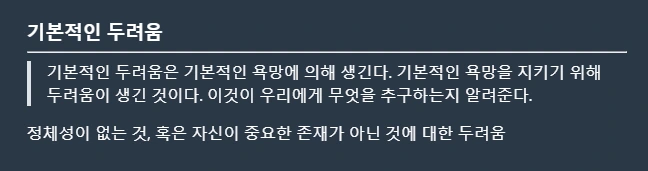 4번의 에너지가 많은 사람의 경우 근본적인 두려움은 자기 존재감을 잃는 것에 대한 두려움이다. 내가 약간 다운될 때 그 이유를 찾았다. 나라는 사람의 고유성에 대한 의심이었다. 자신을 움직이는 원동력이 고유성에 있기 때문이다.