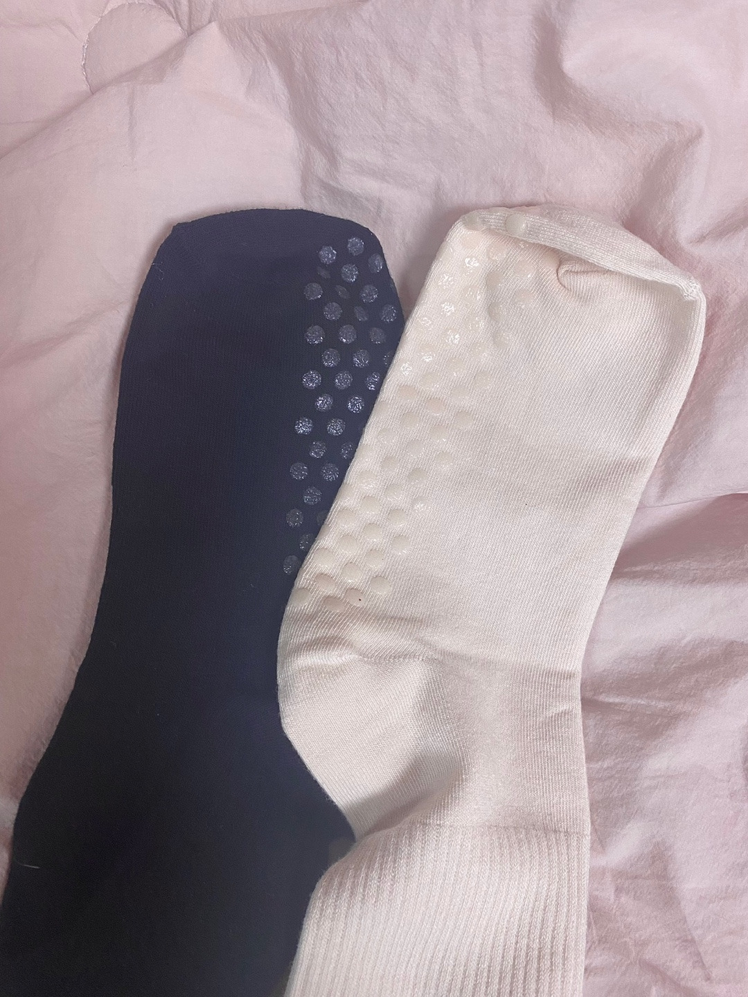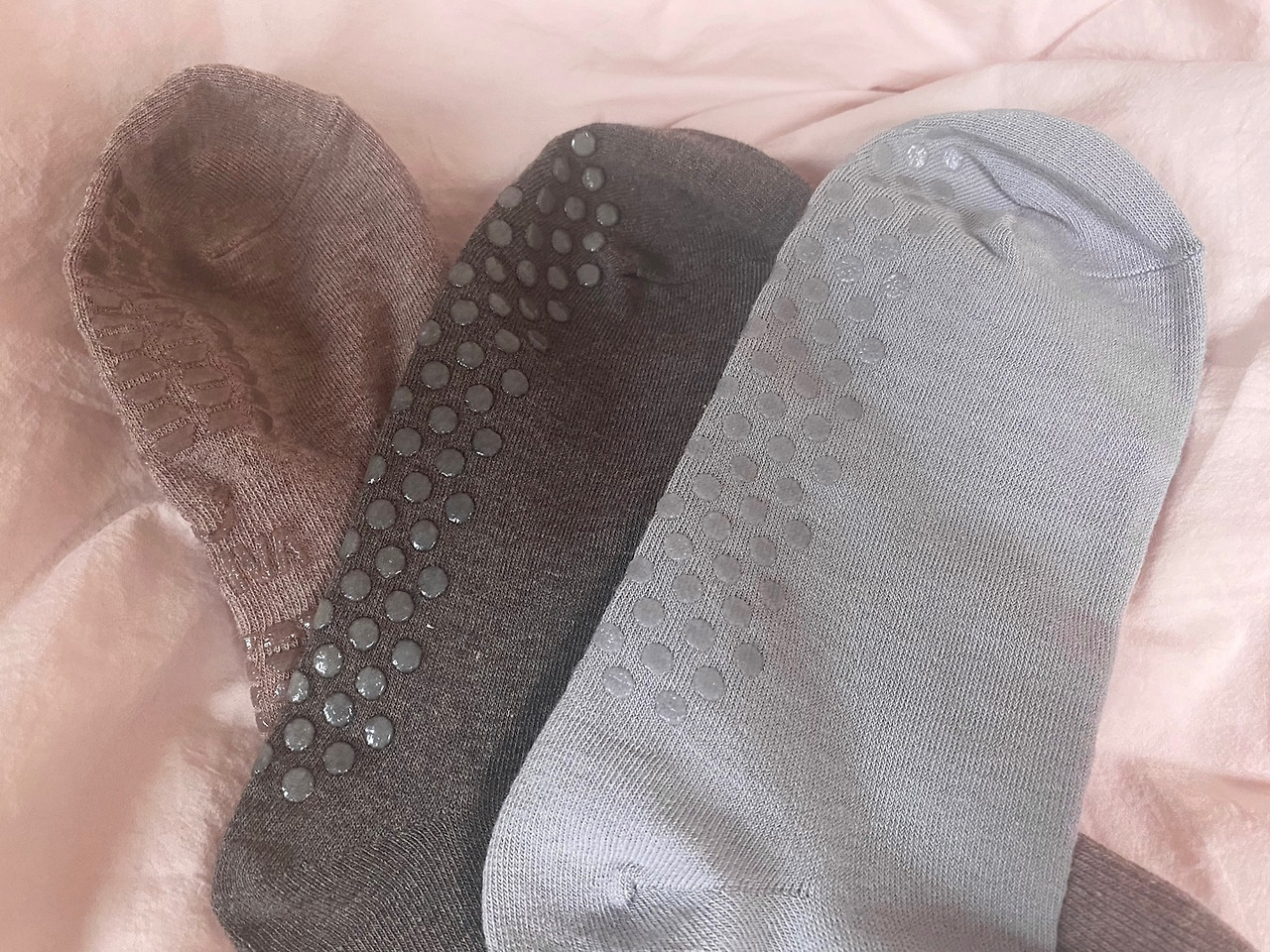 필라테스 초반이라면 도톰한 재질에, 발목까지 오고, 발등도 착 감싸져 있는 논슬립 발가락 양말을 추천한다. 아무래도 양말의 탄성으로 나의 발목과 발등을 조금이라도 받쳐줘 안정적이다. 지금도 가장 많이 손이 가는 양말이고, 정신을 바짝 다잡고 임해야 하는 강사님의 수업을 들을 때는 아주 필수다.