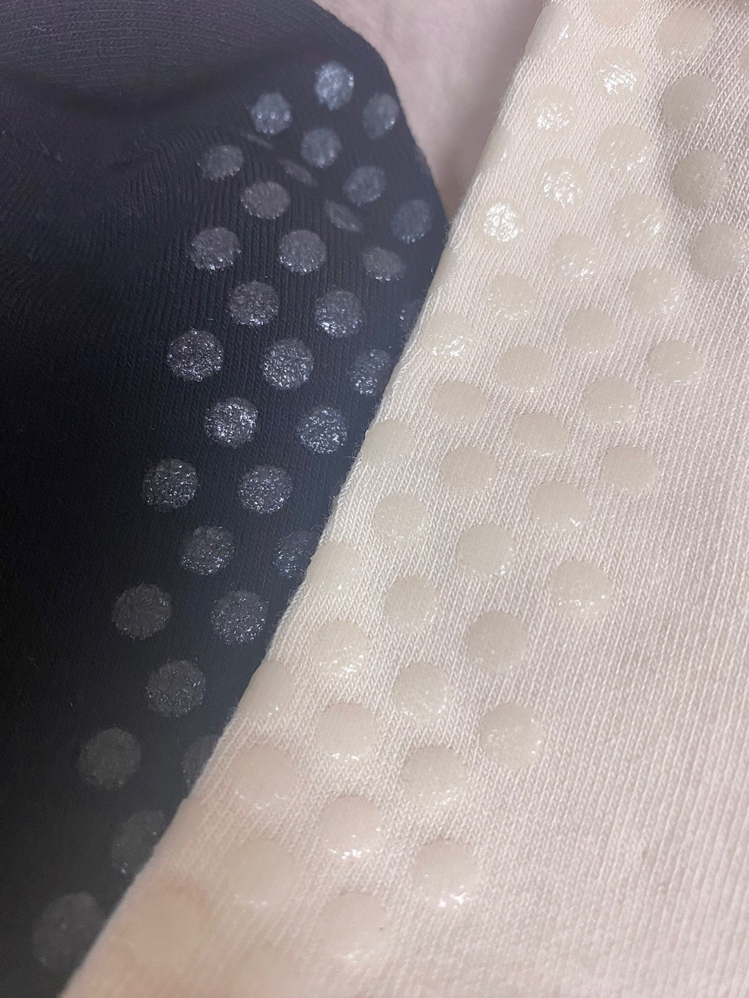마지막으로 '정말' 논슬립 양말인지도 체크해 봐야 한다. 시중에 다양한 필라테스 논슬립 양말이 있다. 색감도 이쁘고 디자인도 다채롭다. 하지만 무늬만 논슬립인 양말에 유의해야 한다. 간혹 색감에 혹해서 샀다가 논슬립의 기능을 전혀 하지 못하는 양말이 꽤 있었기 때문이다. 논슬립 쿠션의 두께가 정말 얇거나 잘 떨어진다.