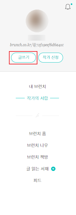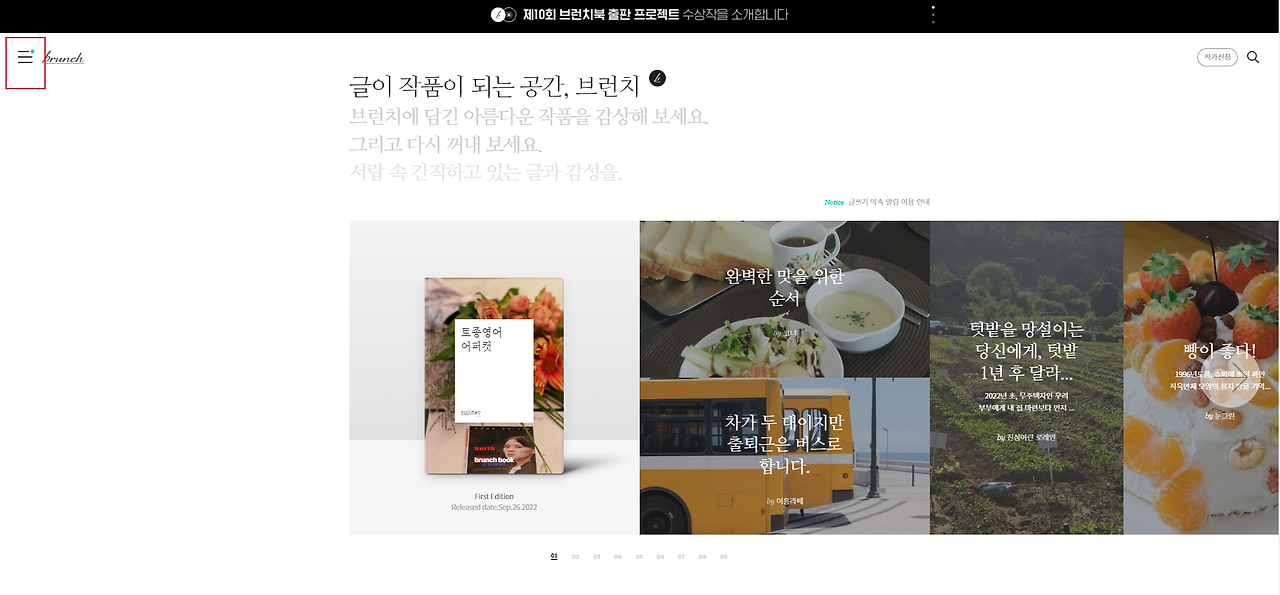 브런치 메인화면에서 왼쪽 상단 줄 3개를 클릭하면,