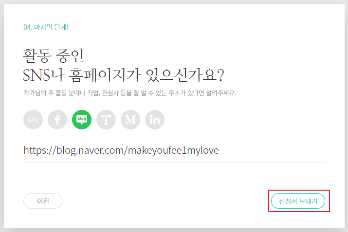 신청서를 보내면 작가 신청이 모두 완료된다.