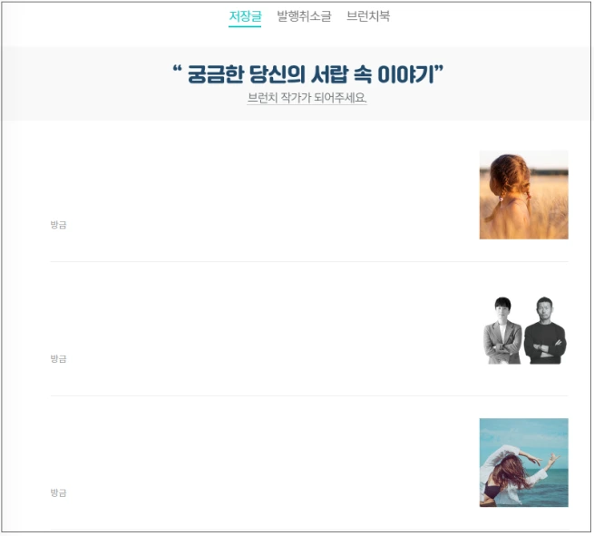 브런치 저장 글은 최대 3개를 저장할 수 있는데, 나는 3개 다 저장했다. 근데 여기서 유의점! 브런치 저장 글을 미리 가장 먼저 저장해 두고 작가 신청을 해야 한다. 저장된 브런치 글이 없다면 당연히 저장 글이 없습니다로 뜬다. 뭐 작가 신청을 처음 해보니 부딪히면서 배웠다.