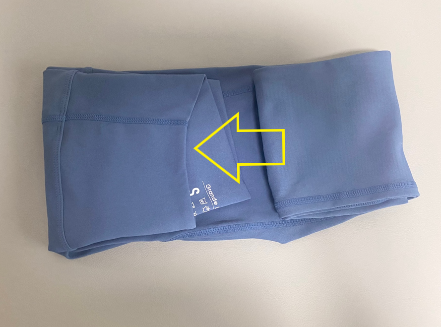 1) 레깅스 뒷면: 가운데 엉덩이 부분을 잘 정리해서 준비한다.