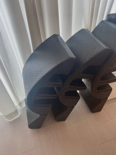 박스 세팅 시 양쪽의 균형이 맞도록 정중앙에 위치시켜 둔다. 체중을 지탱해야 해서 그런지 박스가 생각보다 무겁고 크다. 가장자리에 보면 손으로 잡을 수 있는 검정끈이 마련되어 있는데 양끝을 잘 잡고 읏-짜 힘껏 옮기면 된다.