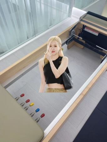 캐리지는 사람이 올라가고, 앉고, 서거나 누워서 동작을 할 수 있는 움직이는 보드다. 항상 움직일 수 있다는 것을 염두에 두면서 내려갈 때나 오를 때 조심히 오르는 것이 좋겠다. 빨, 초, 노란색의 스프링을 걸어서 그 장력을 이용해 왔다 갔다 움직이는 부분이다. 캐리지 in은 캐리지가 안쪽으로 쭉 들어온 상태를 말하고, 캐리지 out은 캐리지가 멀어져 공간이 생긴 것을 말한다. 여유공간 안에 블랙핑크 로제처럼 쏙 들어가 동작을 할 수도 있다.