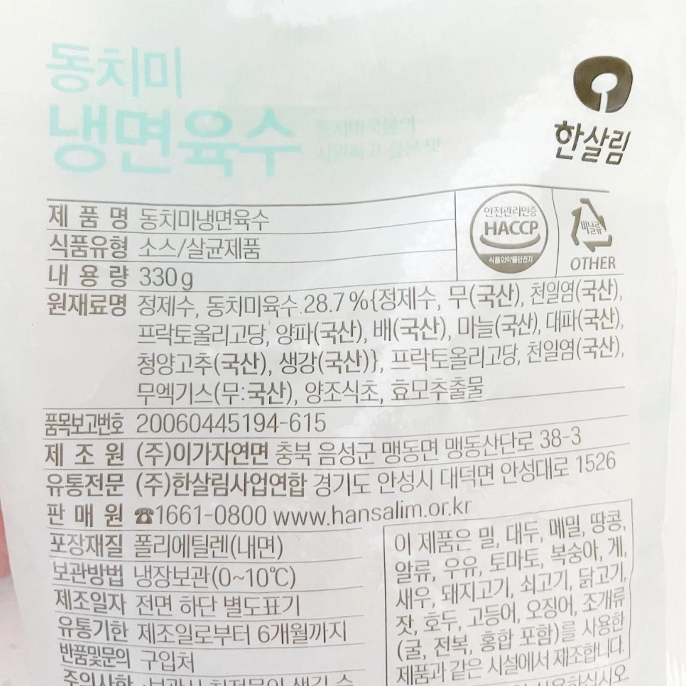 한살림 냉면육수 특징은 고기 베이스가 아님.