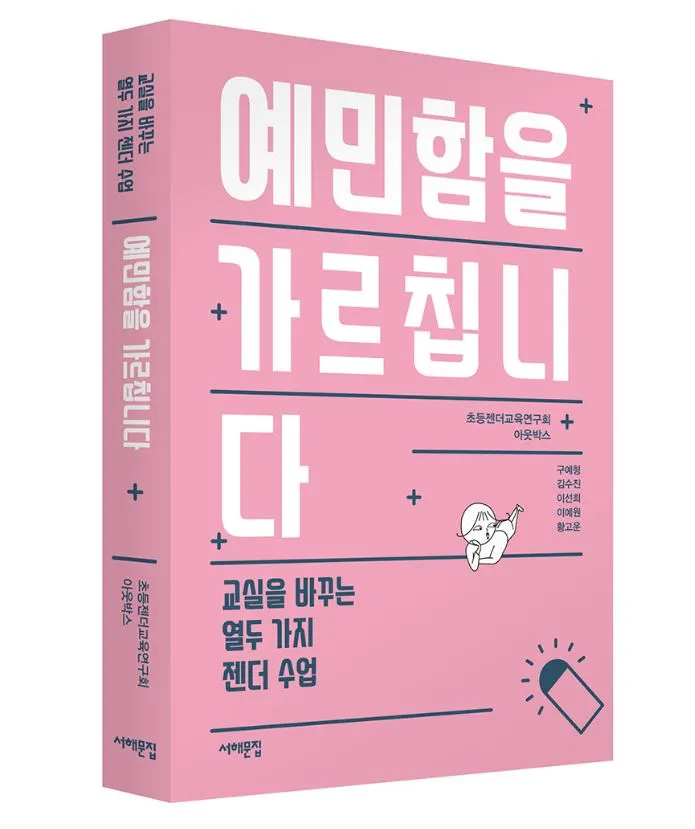 교사가 먼저 바뀌어야죠. 그래서 아이들 수준에 맞춰 우리가 어떤 교육을 해야 할지 매뉴얼을 만들고 있어요. 앞으로는 성평등 교육에 대한 교사연수도 추진해 보려 해요. 최근에는 책도 냈어요. 올해 저희의 목표였고요, 책 이름은 <예민함을 가르칩니다>예요. 저희가 수업한 내용을 담은 교육 에세이예요.