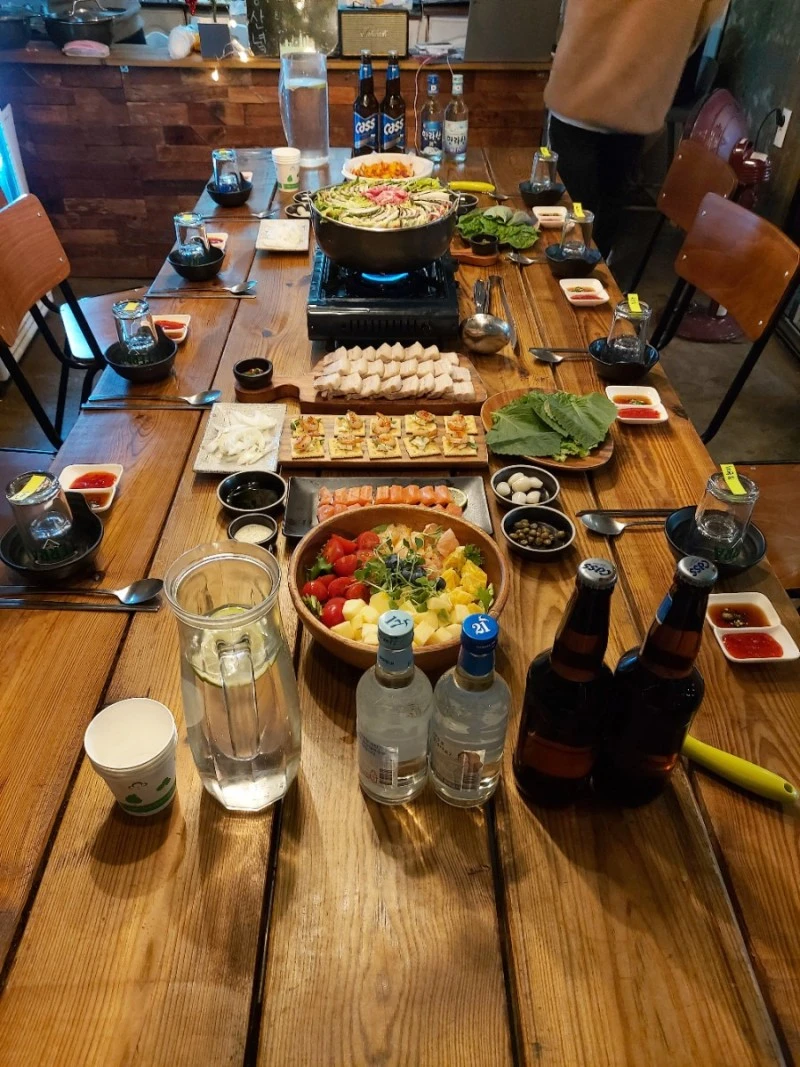 2만 원을 내면 아래와 같은 파티에 참석할 수 있다. 자리는 사장님이 임의적으로 정해놓는다. 일부러 같이 온 사람들은 찢어 놓는다고 했다. 우리는 총 8명이었고, 남자 5 여자 3이었다. 놀라운 것은 모두 90년대 생 ㅋㅋㅋㅋㅋ. 나만 70년대 생 ㅋㅋㅋㅋㅋ 젤 어린 여자분이 95년생이고 중앙대 4학년 학생이란다. 내가 아는 95는 학번뿐이었는데... ㅋㅋ