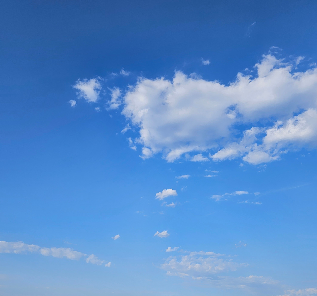짧은 기간 여러 날의 변화가 크다. 어느긴 하루의 변화도 크다. 사진에서는 그 변화가 확연히 차이를 보인다. 움직인 시간과 공간의 반경이 모두 크다. 다만, 폭우를 겪은 아픈 분들의 마음을 헤아리지 못한 듯 너무나 평화로운 하늘이 야속하다. 하늘은얼마 전까지의 상황과는 전혀 다른 얼굴로 안정되며 고요함을 유지한다. 며칠째 구름의 변화도 없이 맑고 예쁜 특별한 이야기로 구름 만들기에 열중이다.