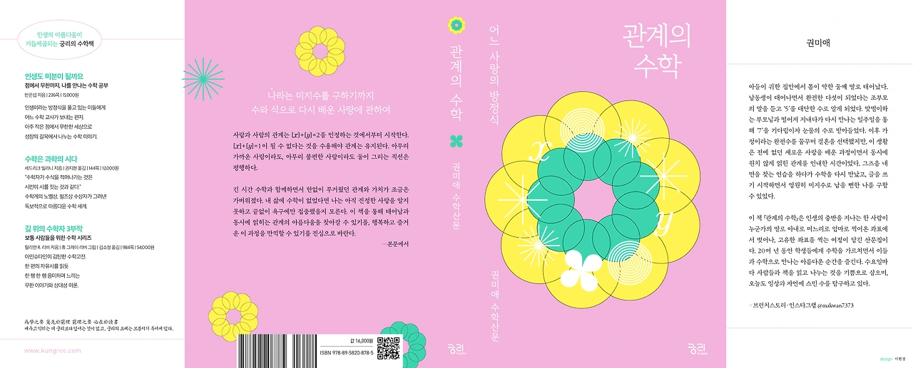제 책이 세상으로 나왔습니다. 책은 수학을 잘 몰라도 삶과 나, 삶에 놓인 수많은 관계에 대해 사랑과 자신을 찾아가는 과정입니다. 결국 삶의 여정의 길에서 나를 찾기까지. 그 과정에서는 수학이 항상 곁에 있었으며 수학과 함께 했습니다. 나의 움직임 변화가 묻어있는 삶과 수학의 공명에 관한 글이라 할 수 있죠.