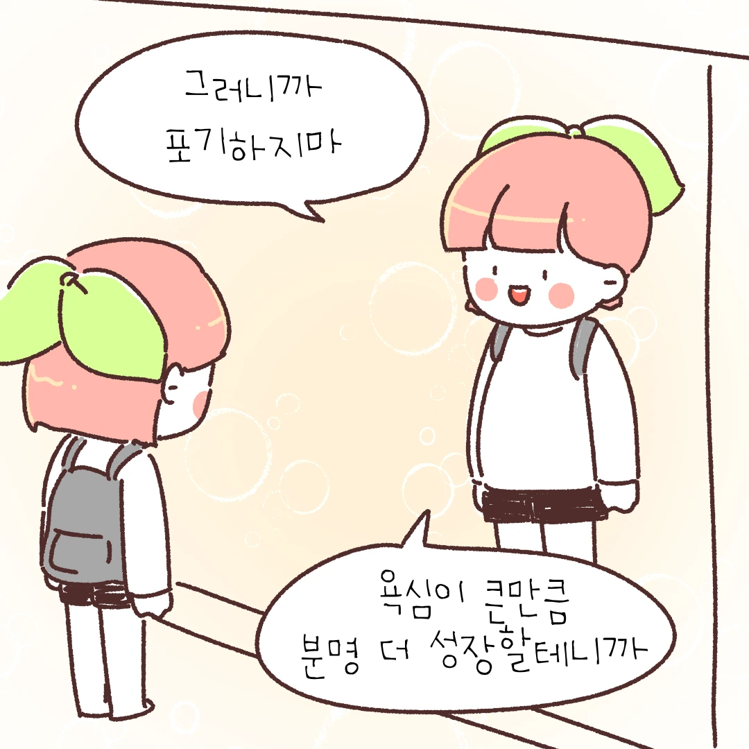 제법 안정적인 생활에 접어들고나니까 그 시기에 내가 얼마나 많은 걸 놓쳤는지 깨달았다. 처음엔 그 시간이 많이 아까워 후회도 했다. 그러나 이내 그마저도 내 인생임을 받아들이게 되었고, 대신 남들은 조금이라도 빨리 헤어나왔으면 하는 마음이 생겼다. 하지만 함부로 조언하는 건 무례한 일이므로 내가 할 수 있는 걸 하기로 했다. 힐링툰을 그리는 일이었다.