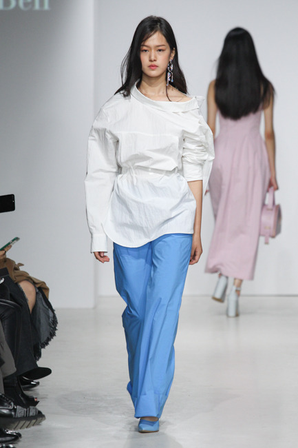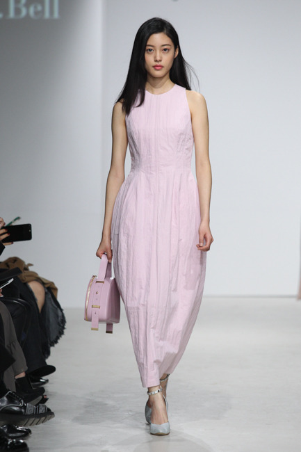 컬렉션은 이 말 그대로였다. 종이처럼 가볍게 살갖을 스치며 구겨지는 수트들 안으로는 부드럽게 밀착되는 얇고 매끄러운 니트들이 매치되었다. 컬러 또한 인상적이었다. 파스텔 핑크, 페일 그레이, 블루, 샤트루즈(Chartreuse)톤의 앙상블들은 모던하고 지적인 도시여성이라면누구나 탐낼 만한 스타일들을 그려냈다. 특히 박의지의 옷과 최병두의 액세서리는 완벽한 모노크로매틱 매치를 이루며 우아한 여성미를 완성시켰다.