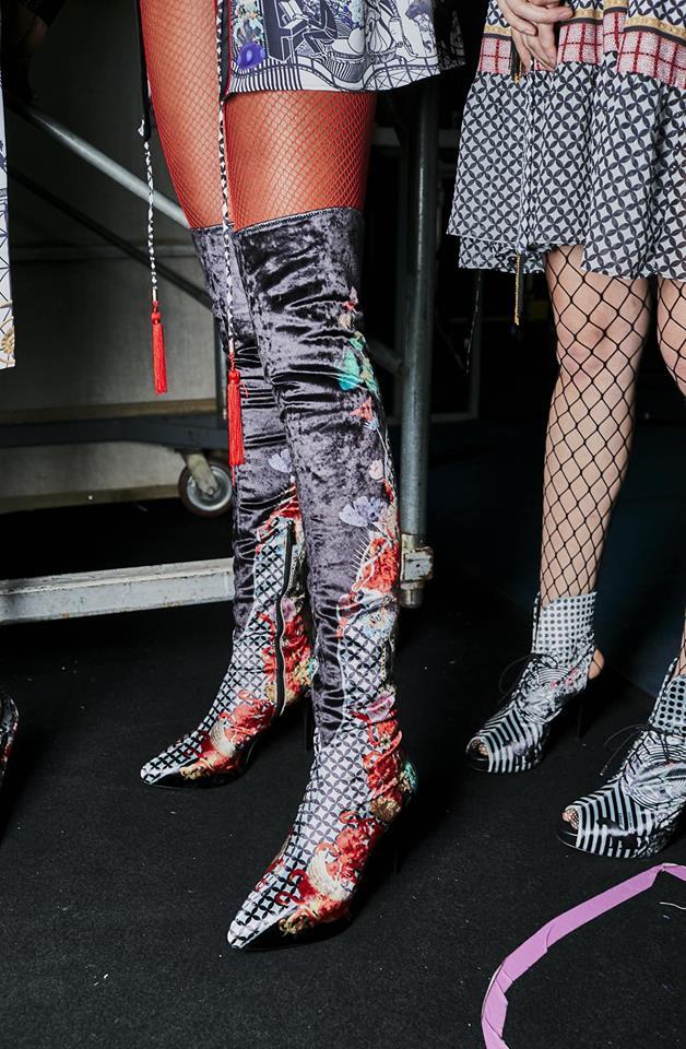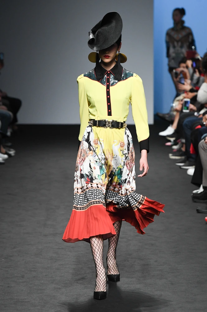 한편, 모자와 구두는 아르데코풍의 신비로움을 쇼에 가미시켰다. 의상만큼이나 꼼꼼히 준비된 슈즈들과 예술적인 조형미로 가다듬어진 모자, 여기에 두칸의 시그너쳐인 셔츠 드레스와 러플 블라우스가 만나면서 쇼의 중반부는 미스터리한 시간여행으로 관객을 몰아갔다.