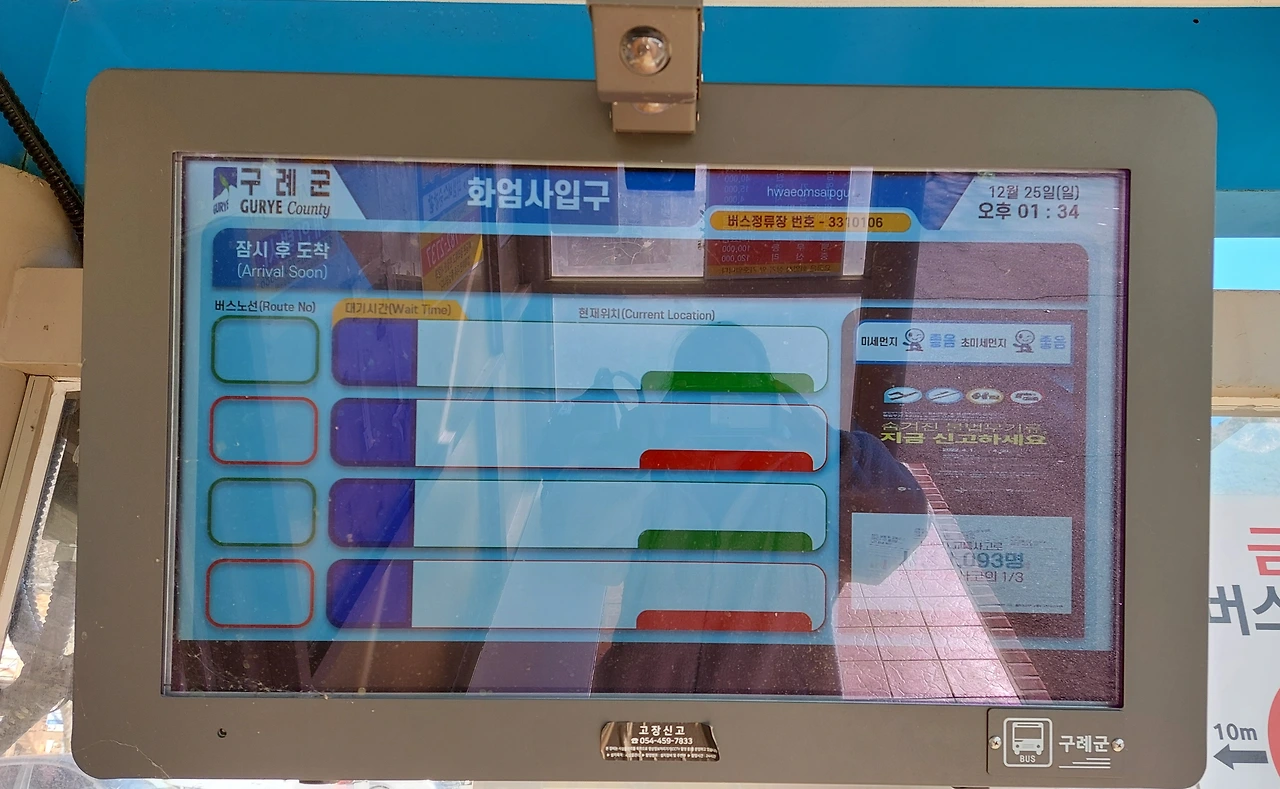 버스정류장에 가도 전광판에 다음에 오는 버스가 없다.