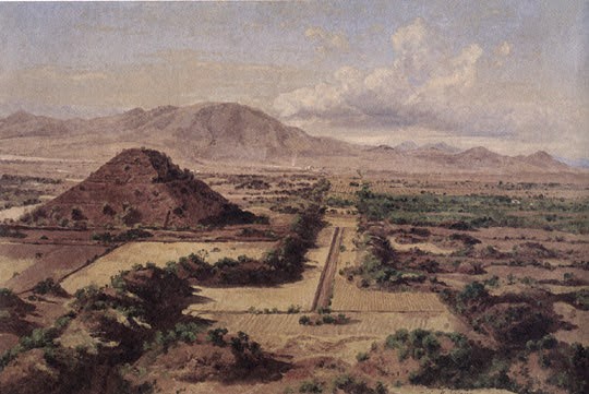 멕시코 풍경화가 호세 마리아 밸라스코의 1878년작 테오티우아칸 '태양의 피라미드' . 19세기 말 당시, 피라미드와 주변 풍경을 살펴볼 수 있다.
