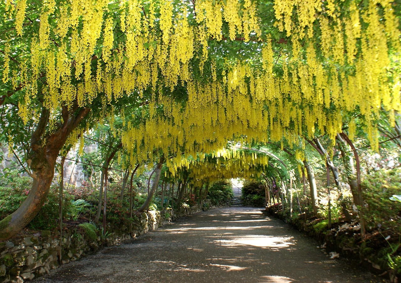 이 라버눔은 5~6월에 활짝 피며 등나무 꽃처럼 줄줄이 노란색 꽃들이 거꾸로 매달려 있어 장관을 이룬다. 꽃이 필 때 내뿜는 바닐라 향기에 취해 노란색 꽃 터널을 거닐다 보면 마치 다른 세상에 온 것 같이 아름다운 가든이다. 라버눔 아치를 보기 위해 영국은 물론 유럽 전역에서 이곳을 방문하는 관람객들로 붐빈다.