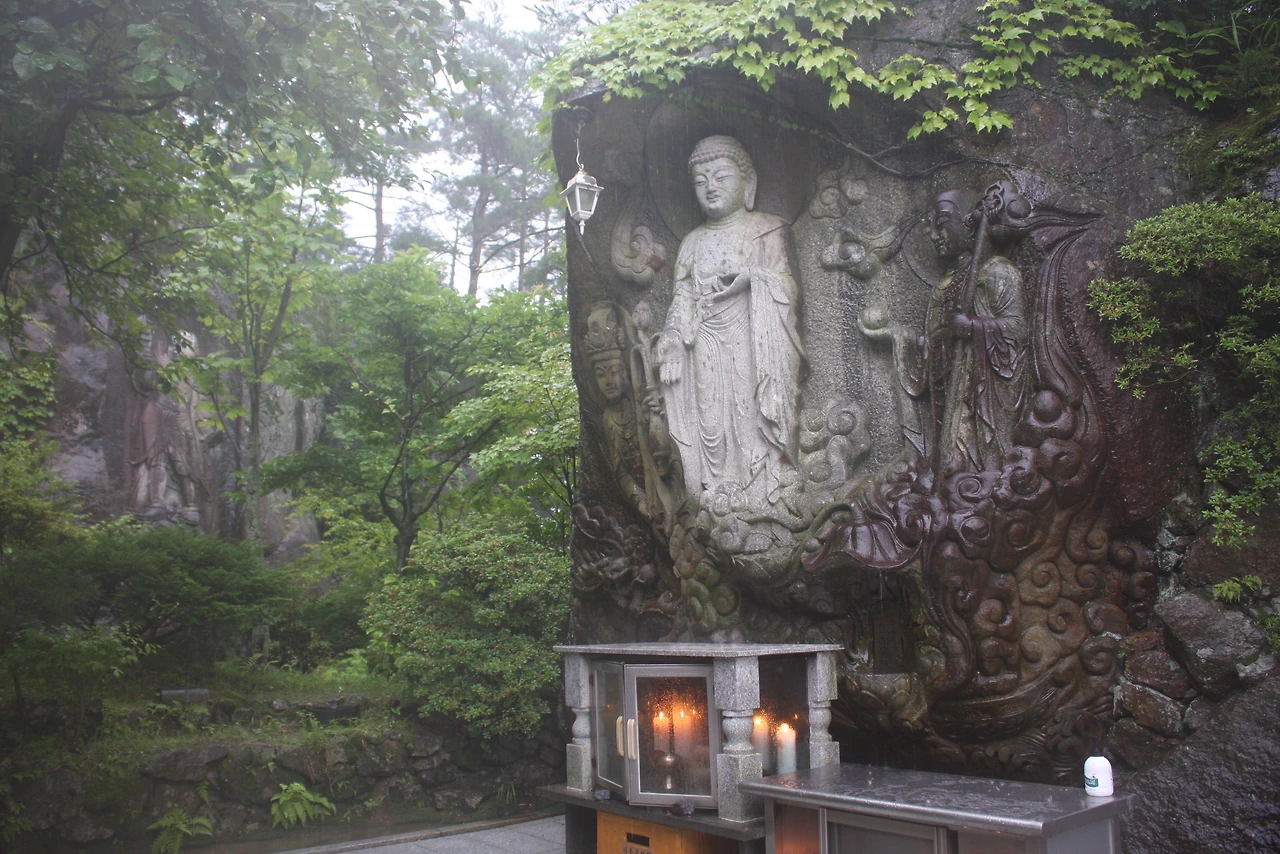 자연 암반에 새겨진 사천왕상을 옆으로 하고 위로 쭉 뻗은 돌계단을 밟아 오른다. 돌계단을 하나하나 오를 때마다 마치 천상계로 올라가는 입구를 걷는 듯하다.