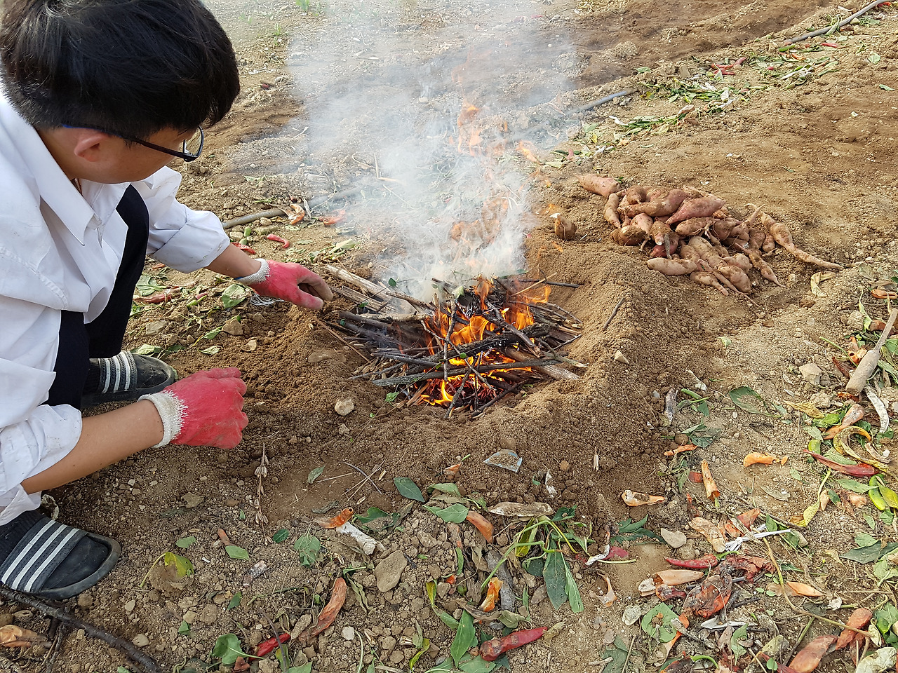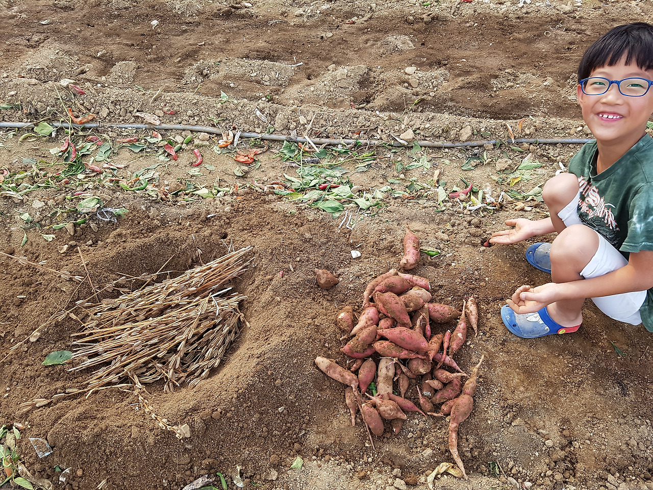 아들에게 고매를 어떻게 구워 먹는지 밭에서 군고구마를 해 먹으면 얼마나 맛난지 알려 주고 싶었다