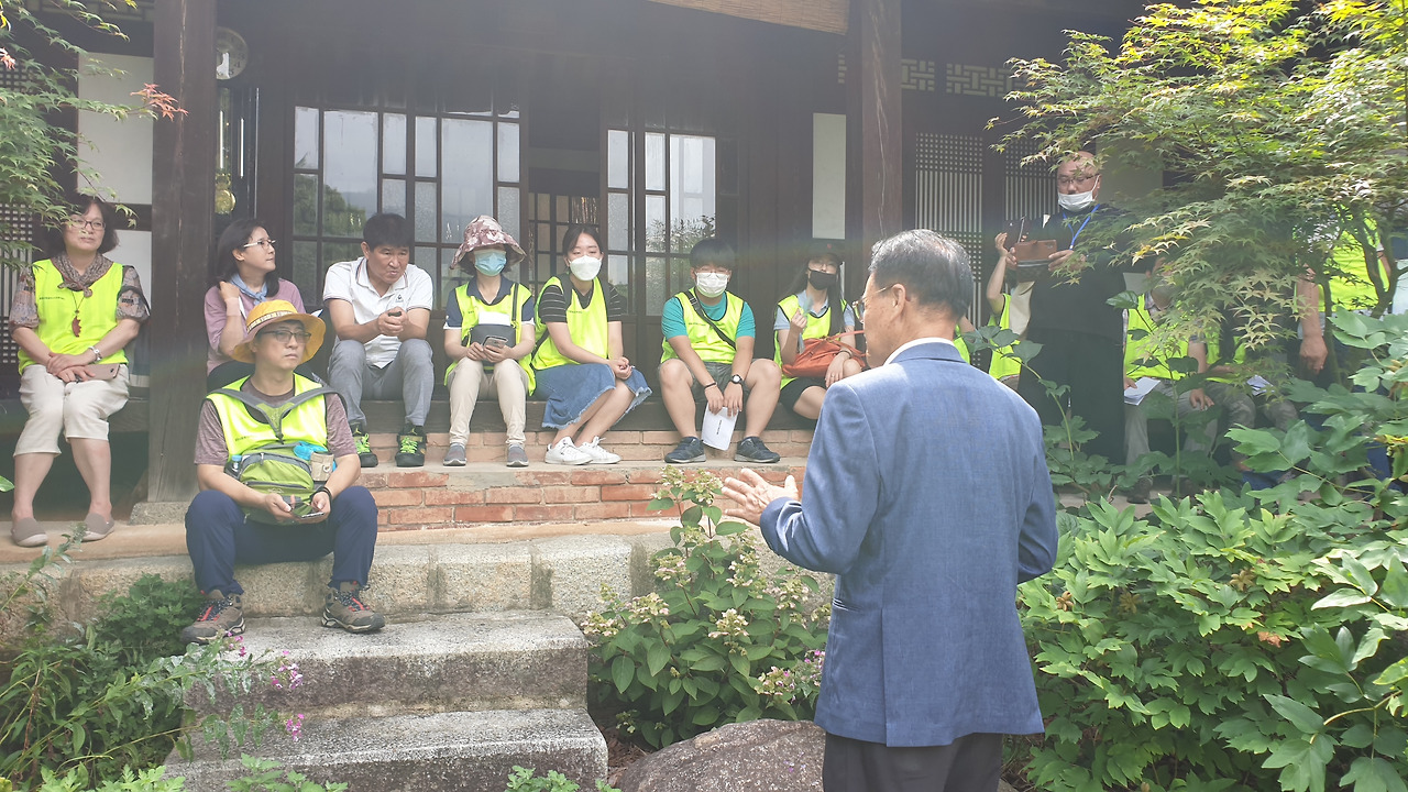 김종영 선생의 생가 안으로 들어왔어요. 선생의 친인척분이 집에 대한 이야기를 하십니다.