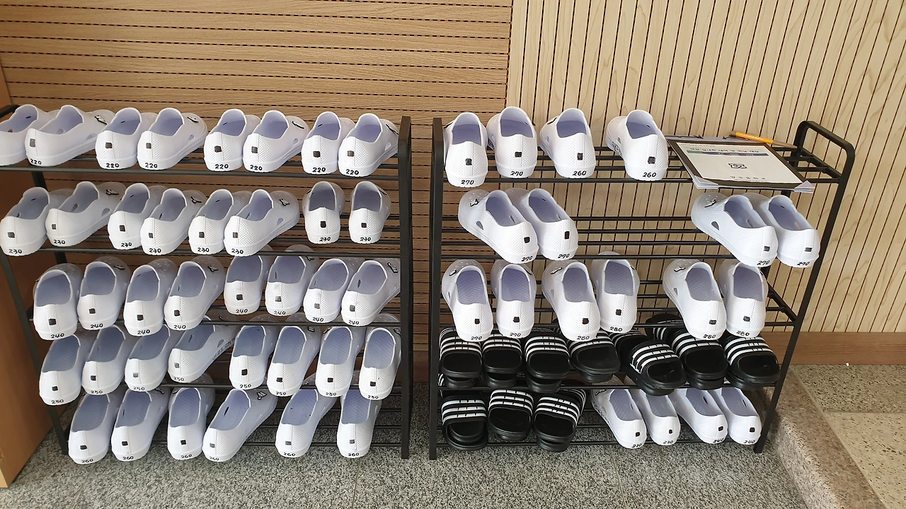 실내화를 가져오지 않은 친구들을 위해 학생회에서 준비한 선물. 자치가 진짜 자치다. 보관이 아주 좋다. 자율의 힘이겠지.