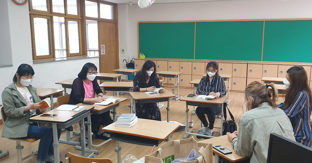 인사하고 집을 나서 김해 월산초 학부모 독서회 참가.
