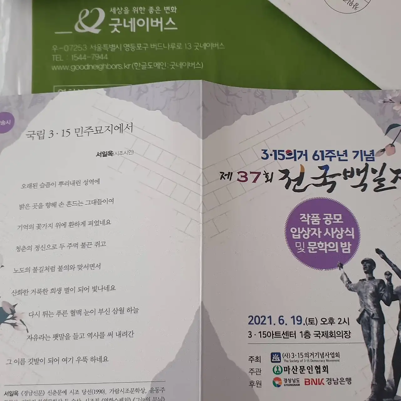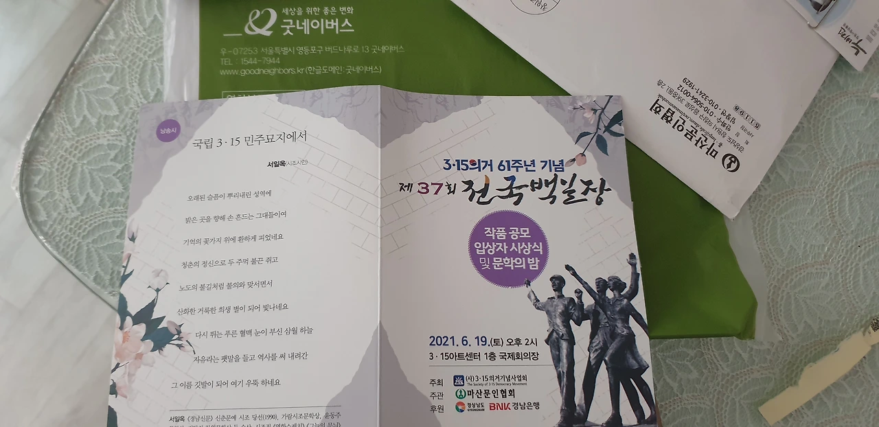 늦잠을 자고, 애들과 골목 텃밭 보면서 도시에서도 기본적인 먹을거리를 어느 정도는 가능하지 않을까 생각했다. 벌도 제법 날아든다. 지역 국회의원 사무실에서 잠시 회의 후 짬뽕 한 그릇. 뭔가 특별해 보이지만, 조금 진할 뿐. 그래도 젊은이들이 많이 오셨다. 나도 젊은이. 창원여성회관에서 창원시건강가정다문화센터에서 진행하는 창원시짝꿍아빠단 아빠역할 감정과 소통으로 자존감 키우기 연수하고. 여전히 다수의 아버지는 나름의 기준으로 침묵을 지켜야한다는 의지가 있나보다. 그래도 다들 마음 속으로는 진하게 느꼈기를 바라며. 인사하고 박수도 받고 나왔다. 그런데 나부터 다시 더 노력해야하는 몸에 밴 그 시절의 그 습관을 어찌 깰까. 여전히 변해가는 수 밖에 없다. 마산문협 3.15백일장 시상식. 도착하니 끝. 회장님과 집행부에서 날 보려 기다리고 계셨다. 막내가 늘 죄송하고 늘 챙겨주셔 감사하다. 좋은 선배가 되어야지. 늘 한결같진 못해도 갈수록 나아지는 그런 사람 말이다. 친구들이 보자는데 집에 가족도 보자는데 어떤 선택이 나을까? 일단 고민 중. 집에 가서 보자. 내일이 제일 설렌다. 엄마보러 가야지. 그런데도 내 인생이 엄마보다 우선이다. 쳇. 여전히 불효다.