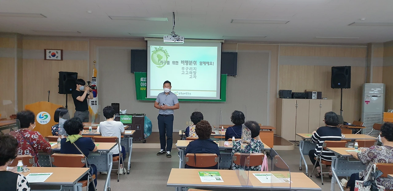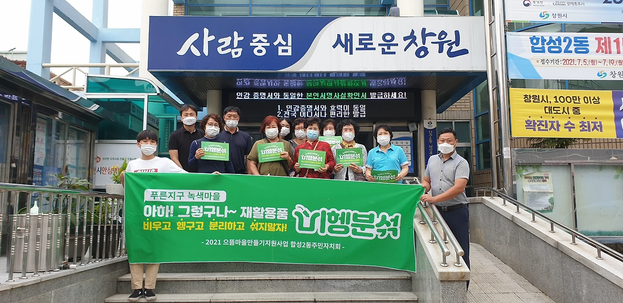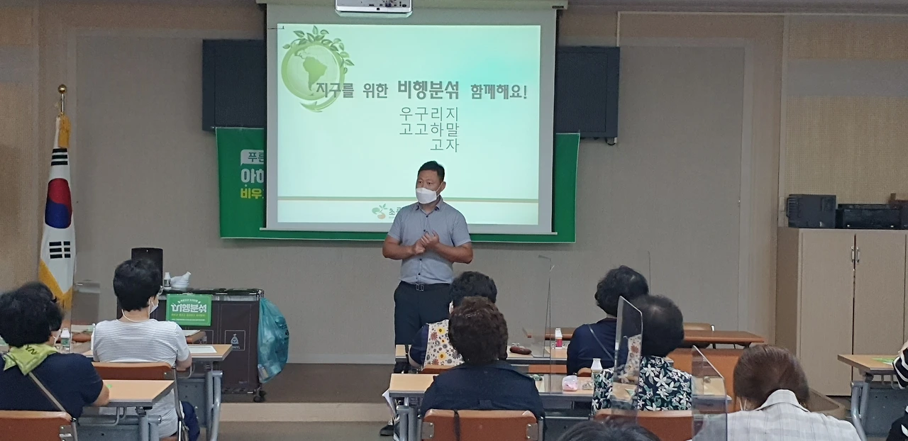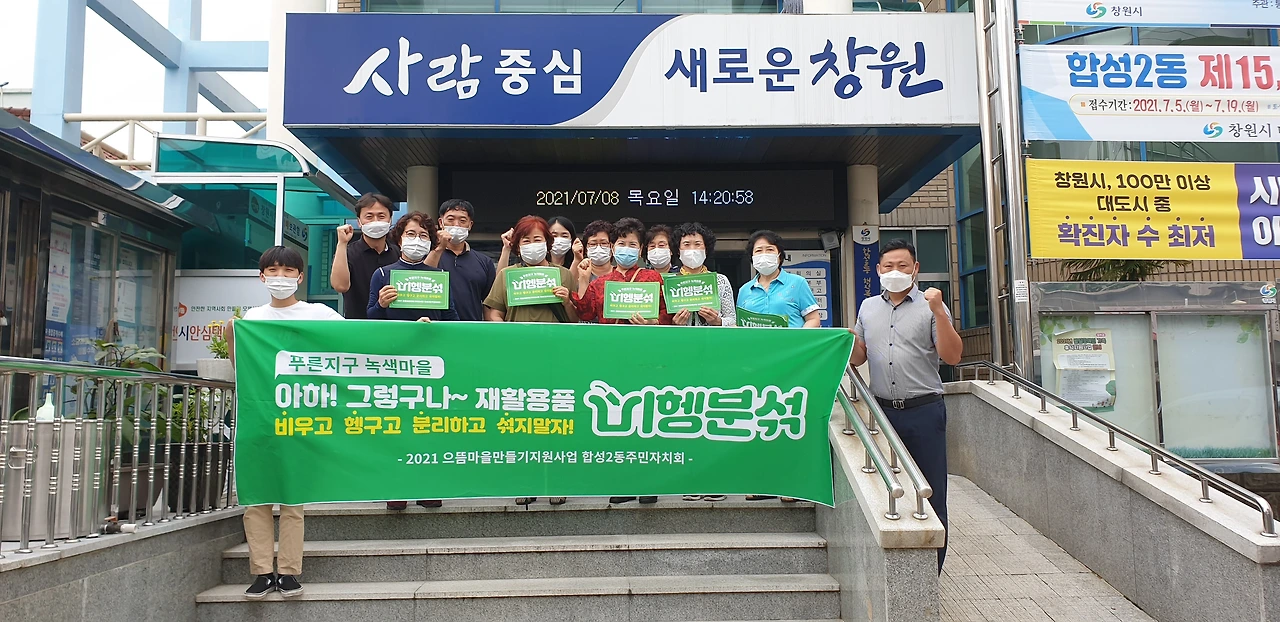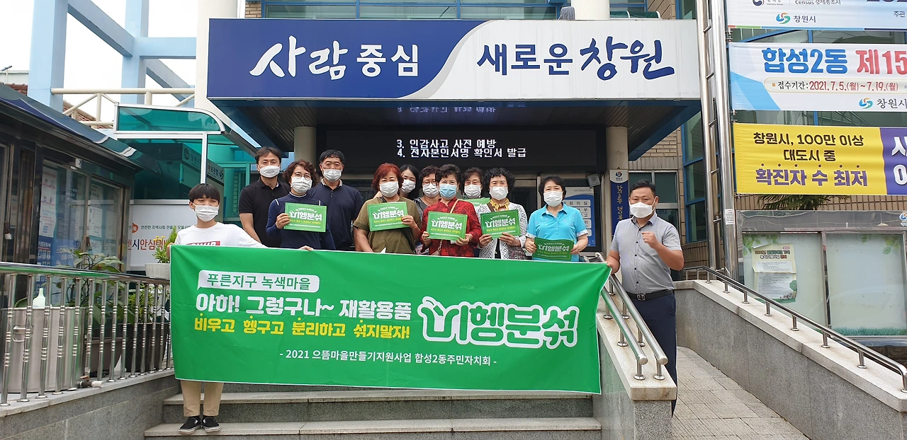 마치고 합성2동 비헹분섞 주민 연수를 위해 날아왔다. 분리수거함을 준비하고, 연수를 했다. 이두찬 초록소비연구소장도 열심히 참여해주었고, 자치회장, 재무님, 동장, 계장 등 동 직원들도 잘 준비해줬다. 도움도 도움도 이런 도움이.