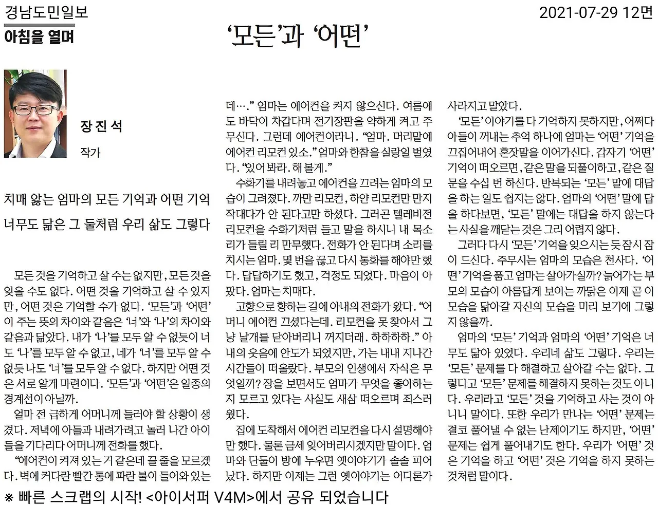태어나서 늘 엄마와 함께 있었다. 농사를 짓는 부모님 그늘에서 늘 그랬다는 말은 어느 정도 차이가 나겠지만 그래도 나는 늘 부모님과 함께였다고 믿고 싶다. 아침에 젖 먹이고 나면 논으로 밭으로 나가셨다고 하지만 나는 지금도 그렇게 믿고 싶다. 학교를 들어가면서 늘 친구들과 함께였다. 물론 제각각의 생각이 달랐겠지만, 여전히 나는 늘 친구들과 함께였다고 믿고 싶다. 사회 생활을 하면서 늘 동료들과 함께였다고 믿었다. 물론 제각각의 이익을 위해 모여들었지만, 여전히 나는 그들과 함께였다고 믿었다. 연애를 하면 늘 연인과 함께였고, 결혼을 하고 나서는 늘 아내와 함께라고 믿었다.