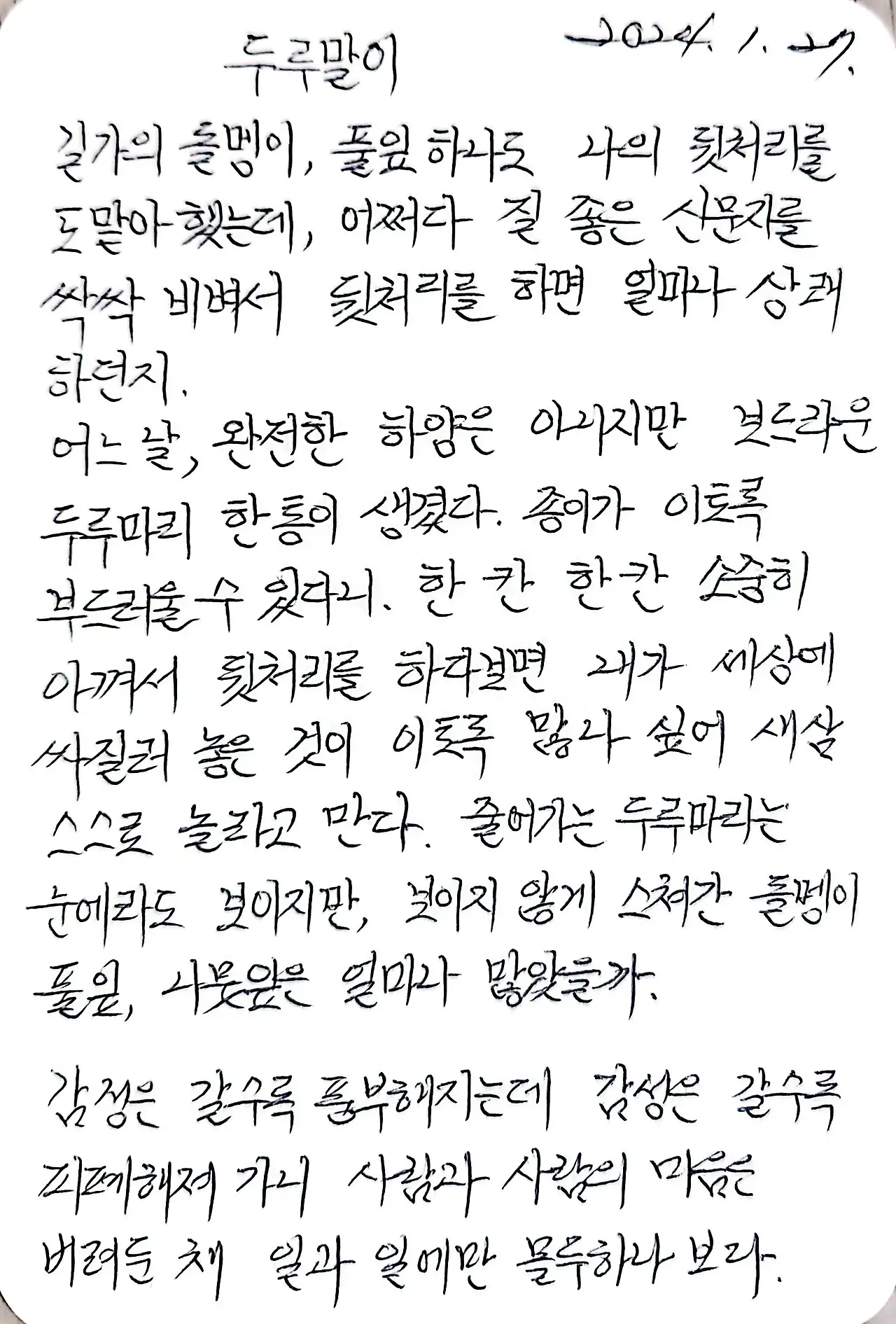 다듬지도 못했지만 흐르는 생각을 낙서했다