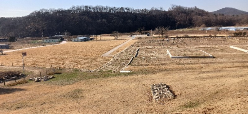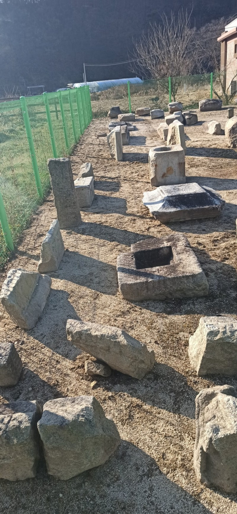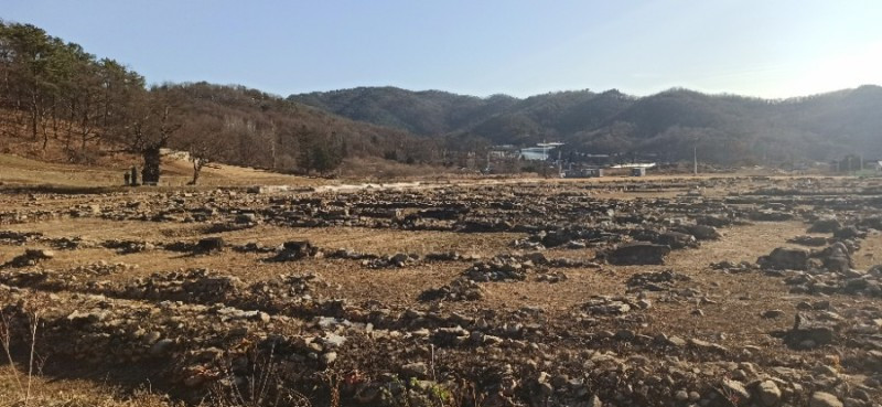 나무 앞으로는 폐사지에서 출토된 것으로 보이는 돌들이 어마어마하게 쫘악 깔려있어 이 절의 규모가 참 컸음을 알 수 있다. 지금까지 둘러본 폐사지 가운데 가장 넓은 터를 자랑하는 법천사의 절터에는 마을이 들어서 있다. 현재 너른 밭을 중심에 두고 외곽으로 자리 잡고 있는 마을 전체가 절터였다고 한다. 마을 이름인 법천리가 법천사에서 유래됐을 만큼 큰 사찰이었을 것이나 발굴조사가 아직도 진행 중이라 절의 정확한 규모는 알 수 없다. 다만 당간지주가 서 있는 위치에서 부도전으로 추정되는 건물터가 있는 북쪽 산기슭까지 거리가 무척 길고 넓어서 매우 너른 절터였으리라 짐작할 뿐이다.