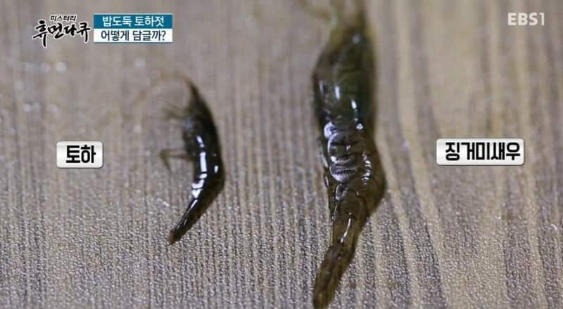 민물새우가 궁금해서 좀더 찾아보니, 토하젓의 원료가 되는 새우는 1급수 저수지나 또랑에서 잡히는 민물새우로 지방에 따라 새뱅이, 새비라고 불린다. 정식명칭은 새뱅이지만 흙냄새가 나는 새우라고 해서 '토하'라는 이름이 붙었다고 한다.