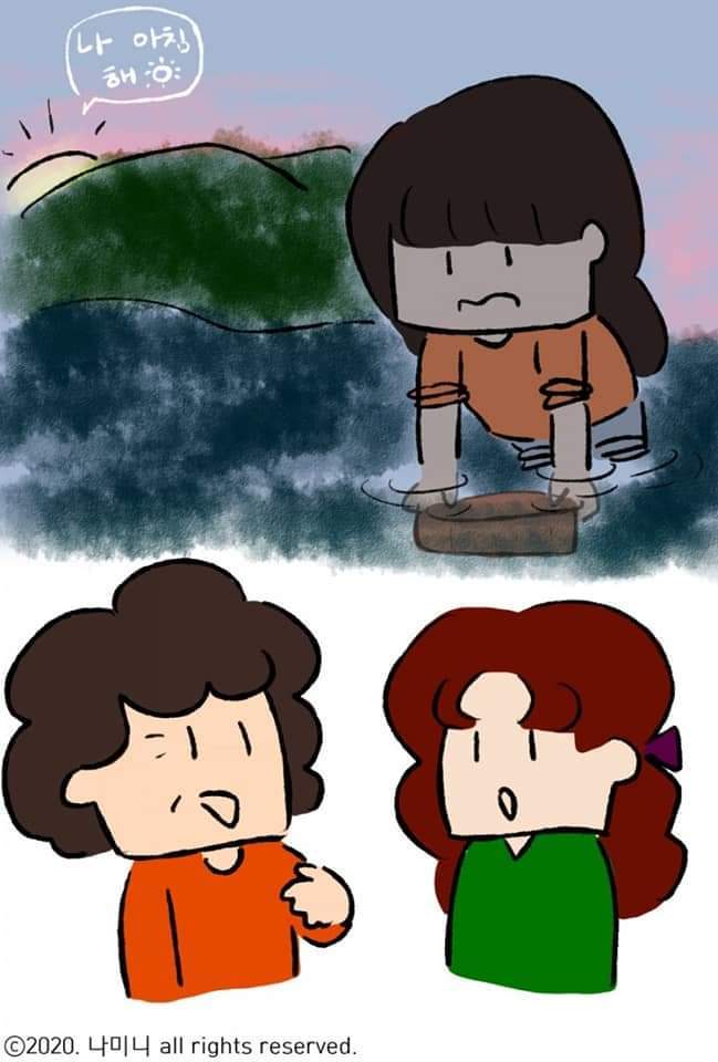 집에 오믄 식구들은 아침밥 먹고 있응께 부리나케 숟갈 들고 밥상으로 갔재. 허벌나게 배가 고프거등. 할무니랑 어무이가 먼저 아침 자시곤 새비 든 소쿠리에서 자잘한 티 골라낸 다음에 소금에다 절이셨재. 개울물 바닥을 긁어서 잡는 거라 뭔 잡티가 많았걸랑."