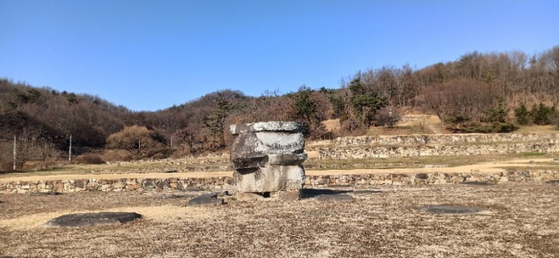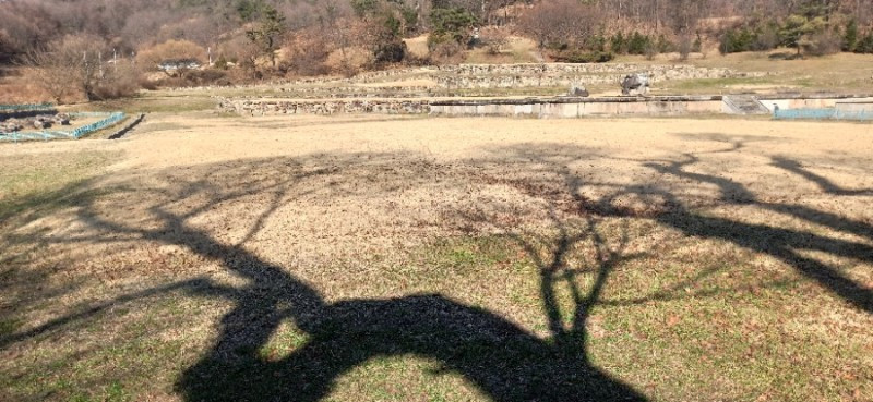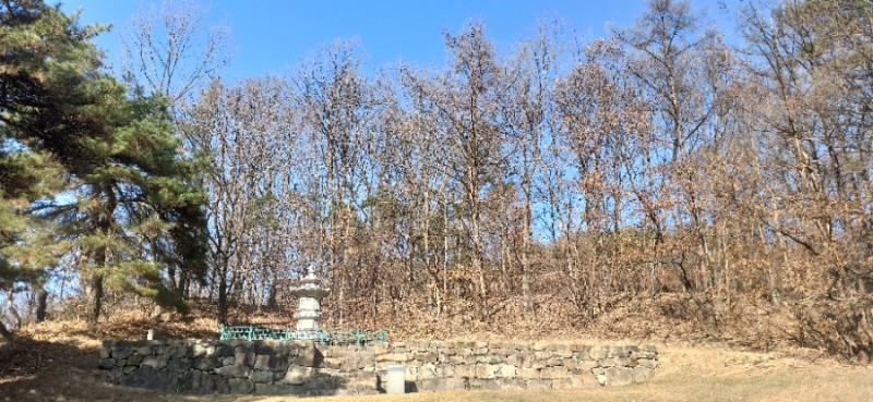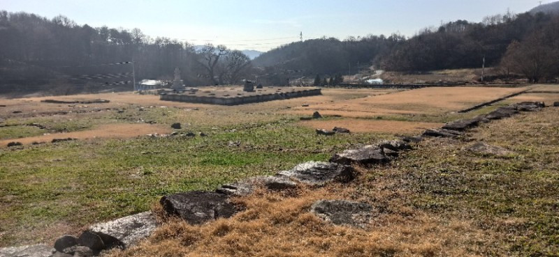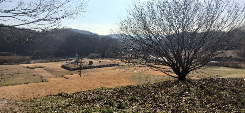 거돈사지 절터는 약 7,500여 평이라고 한다. 법천사지만큼은 아니지만 꽤 큰 편이다. 빈 절터를 가운데 두고 낮은 야산이 병풍처럼 빙 둘러져있고, 동쪽의 정산저수지(2000년 준공) 아래로 흘러내리는 개울이 있는 앞쪽은 살짝 트였다. 우리가 찾은 날은 겨울을 재촉하는 바람이 제법 부는 날이었는데, 거돈사지는 희한하게도 바람이 불지 않아 아늑하고 포근한 분위기였다.